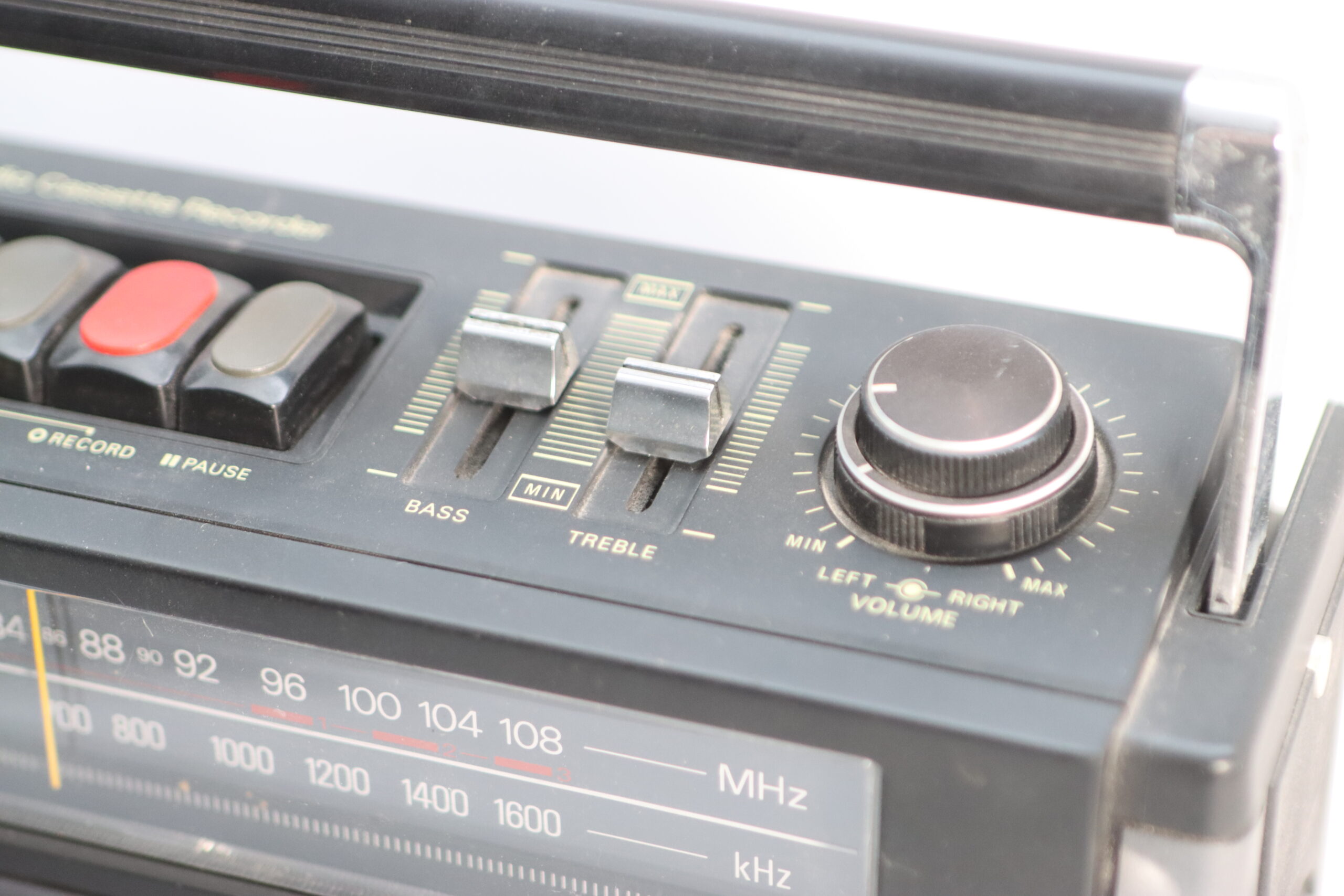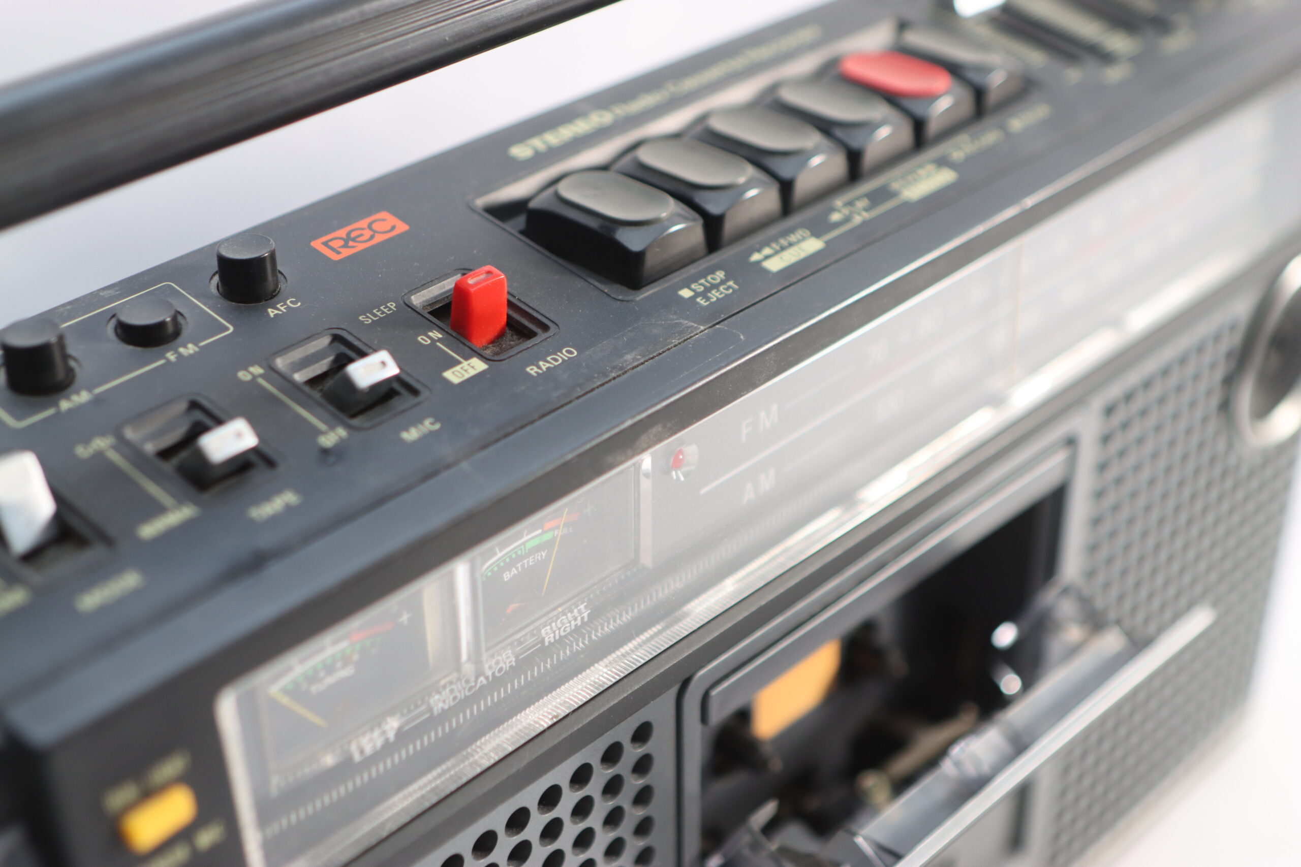 【注意事項】 本製品は、その特徴的なパンチングデザインと時代感を活かした鑑賞用オブジェおよび撮影用プロップであり、ラジカセとしての実機能(カセットの再生・録音・ラジオ受信・スピーカー出力・各種メーターの正確な動作等)は備わっておらず、動作保証もございません