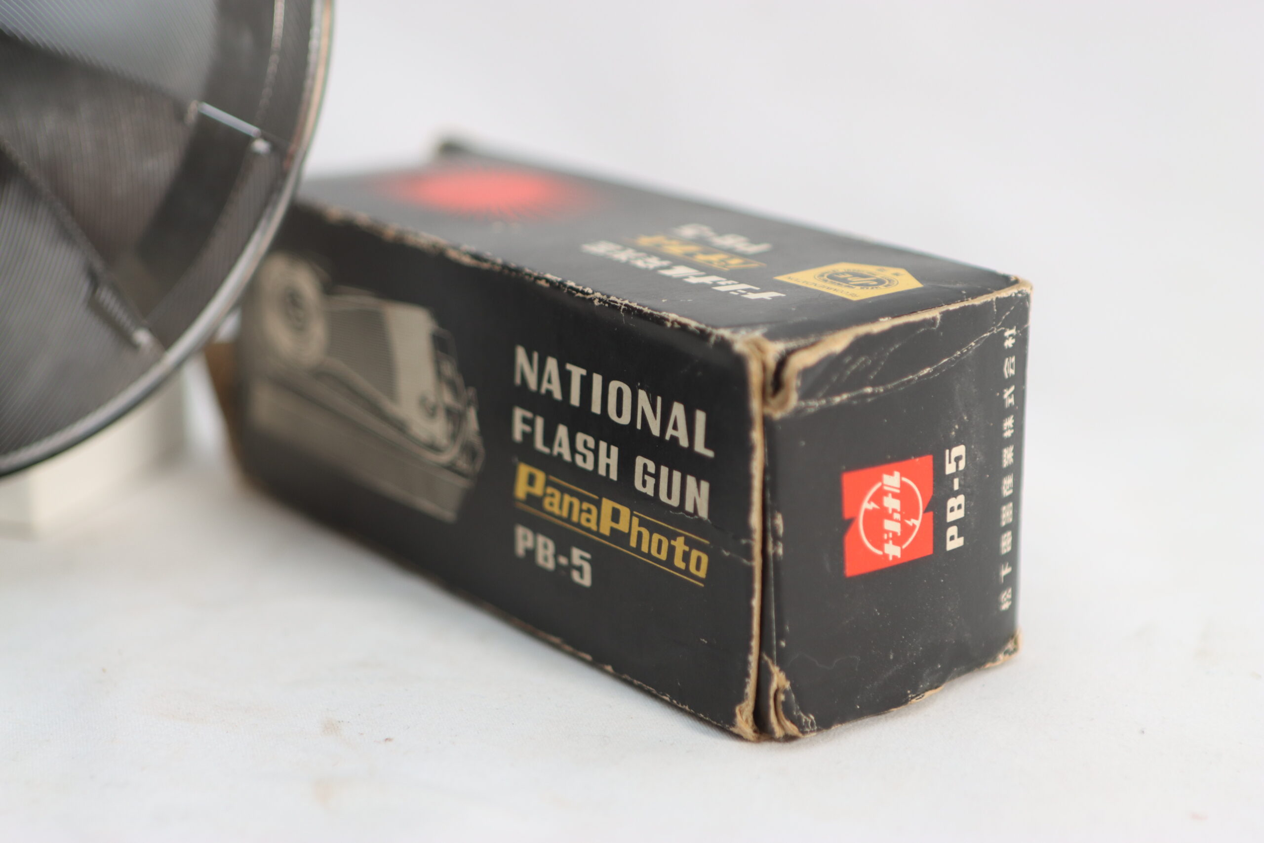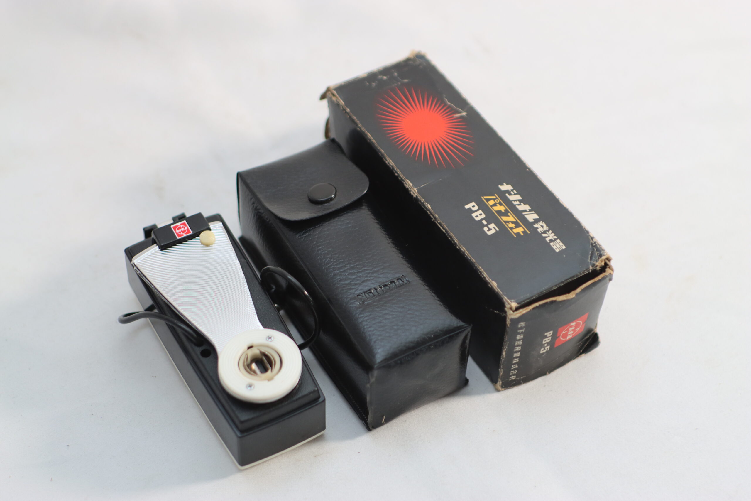 「ナショナル発光器」という日本語表記が躍るヴィンテージ感溢れる元箱と、専用のレザーケースが揃った、資料的価値の高い一品です。