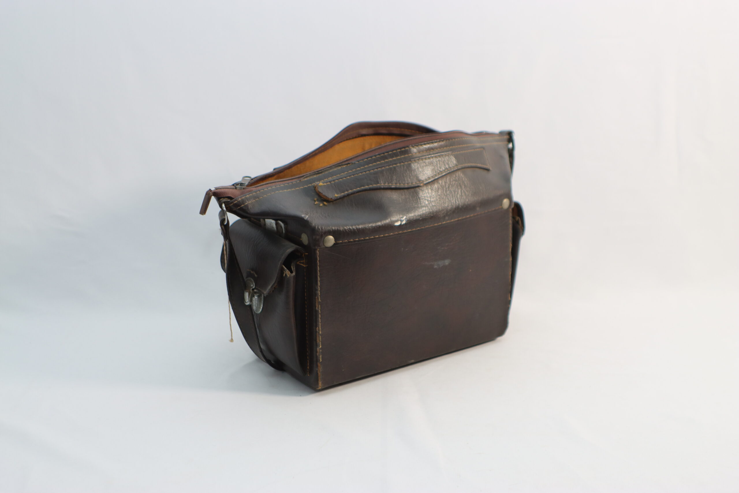 【注意事項】 本製品は、そのヴィンテージな風合いと質感を活かした鑑賞用オブジェおよび撮影用プロップであり、カメラバッグとしての本来の保護性能(防水性・緩衝性等)や、付属する電子機器(フラッシュ・露出計等)の動作保証は一切ございません