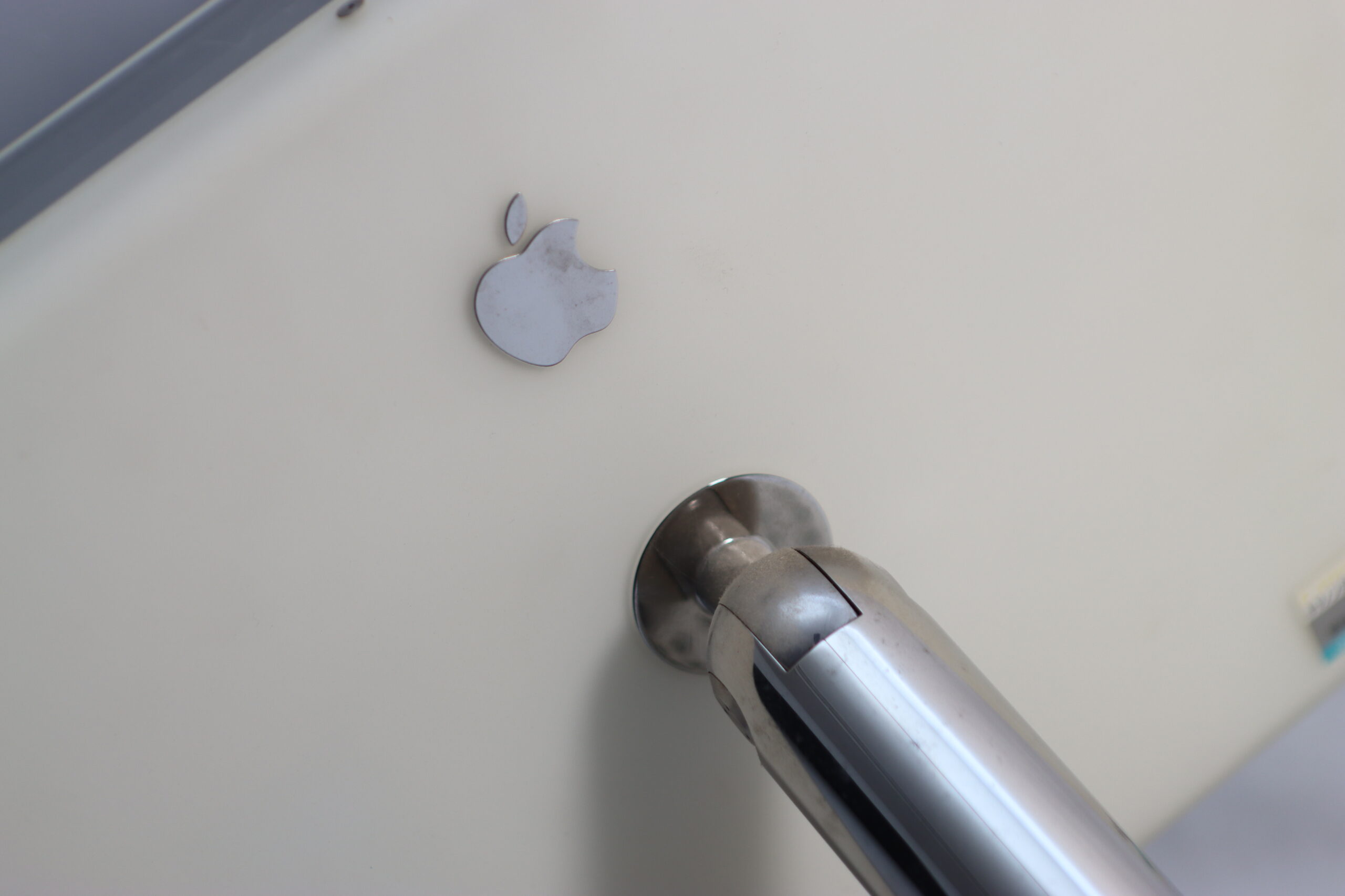 「大福」の愛称で親しまれた半球状の本体と、自由に角度調整が可能なフラットパネルディスプレイを繋ぐクロームのアームが、空間に「ミレニアム時代の近未来デザイン」とApple独自の美学を付与します。