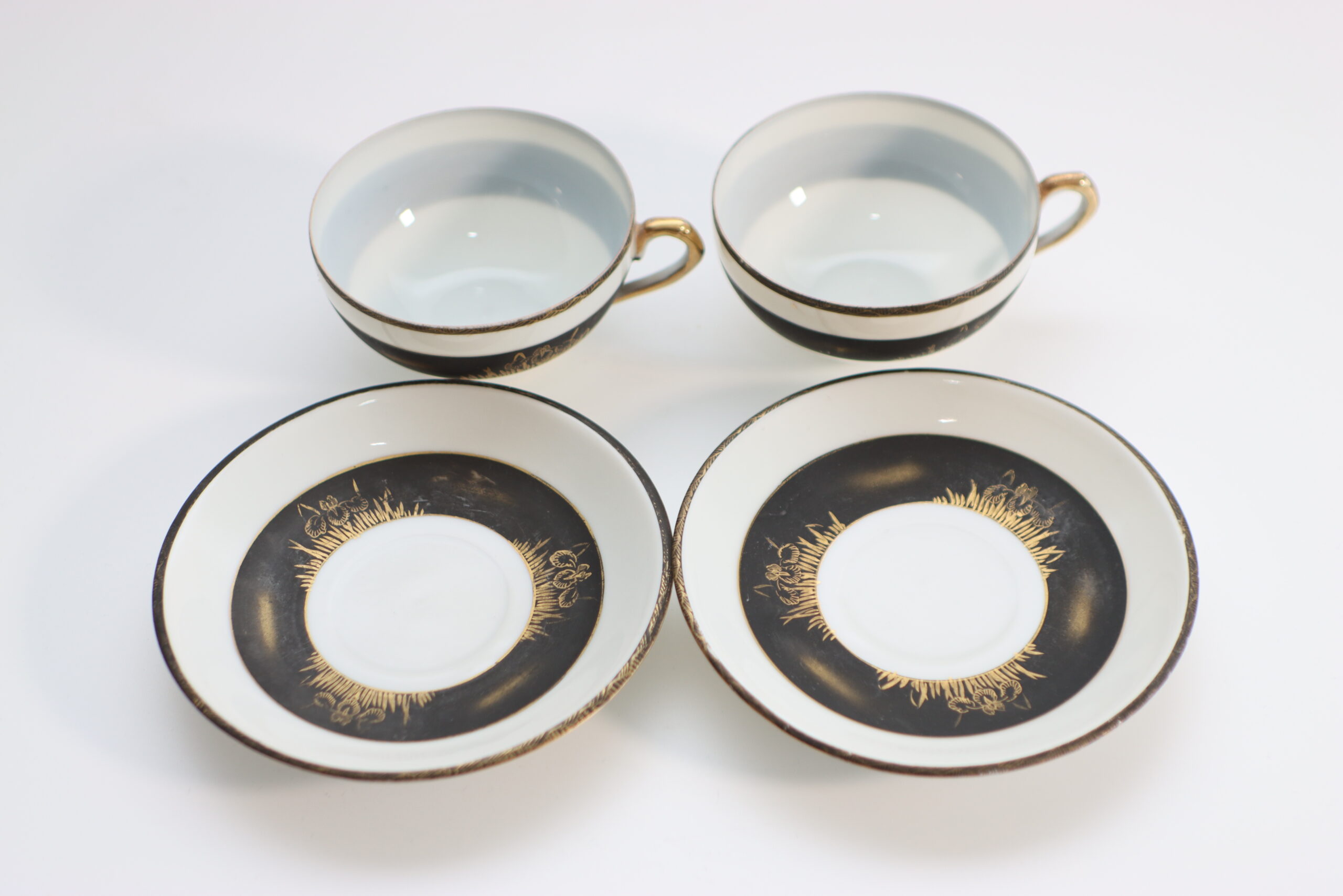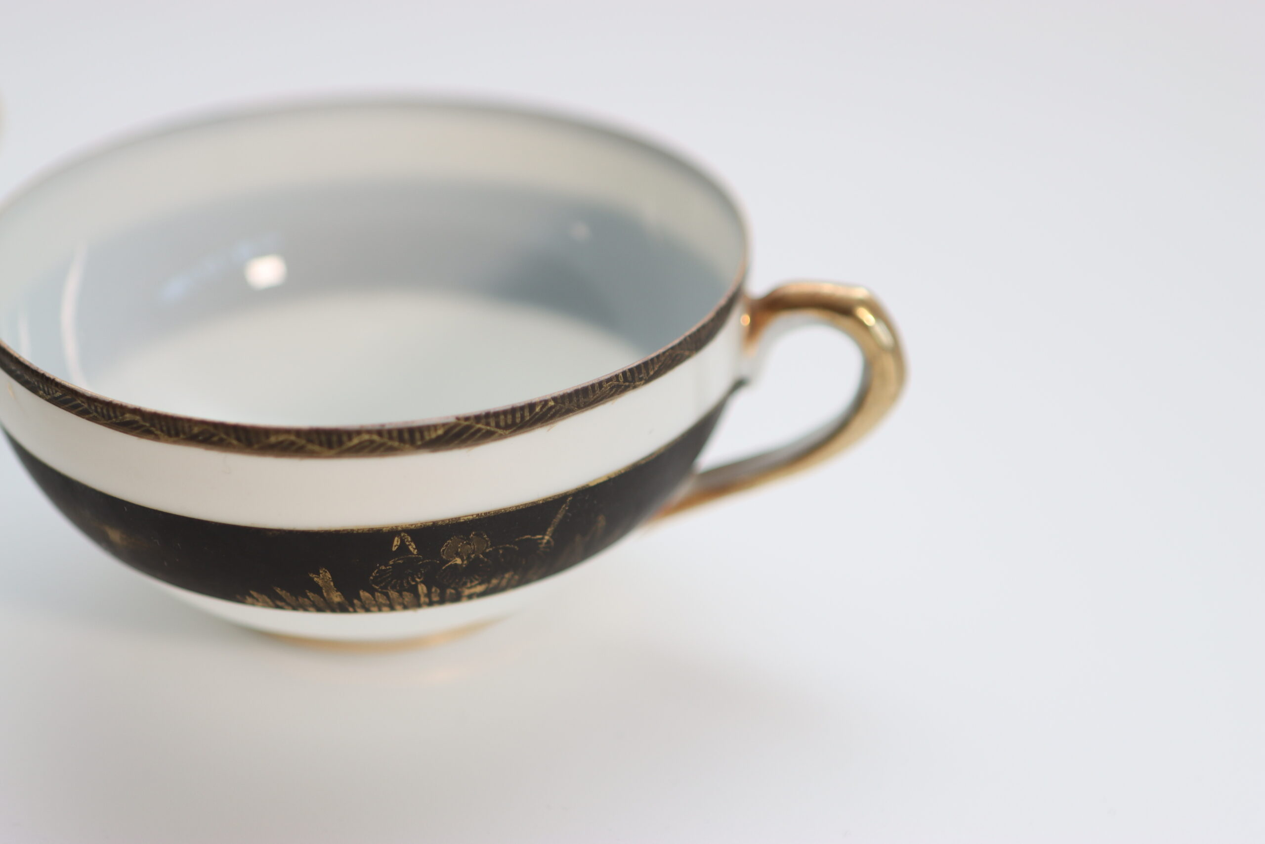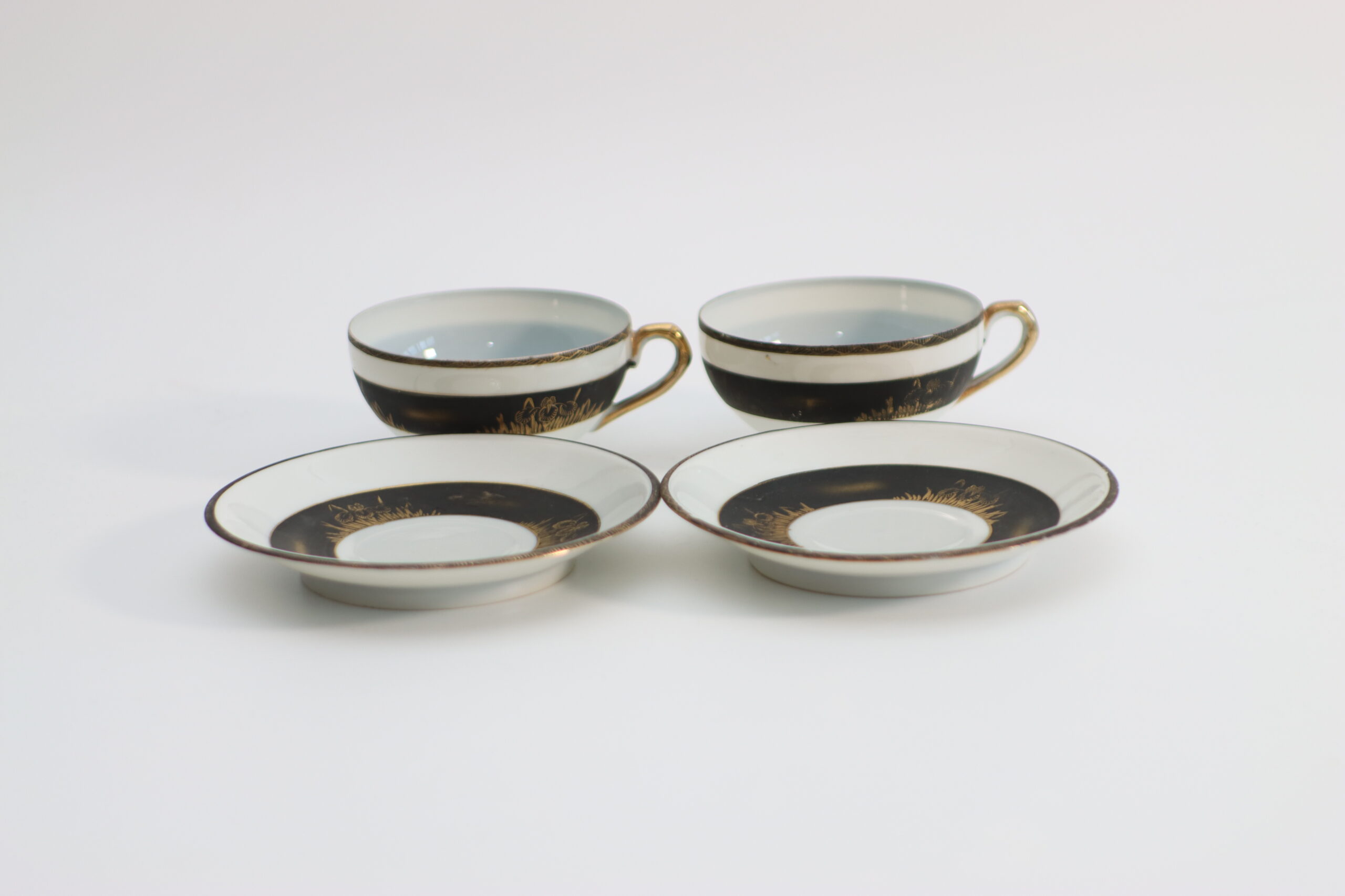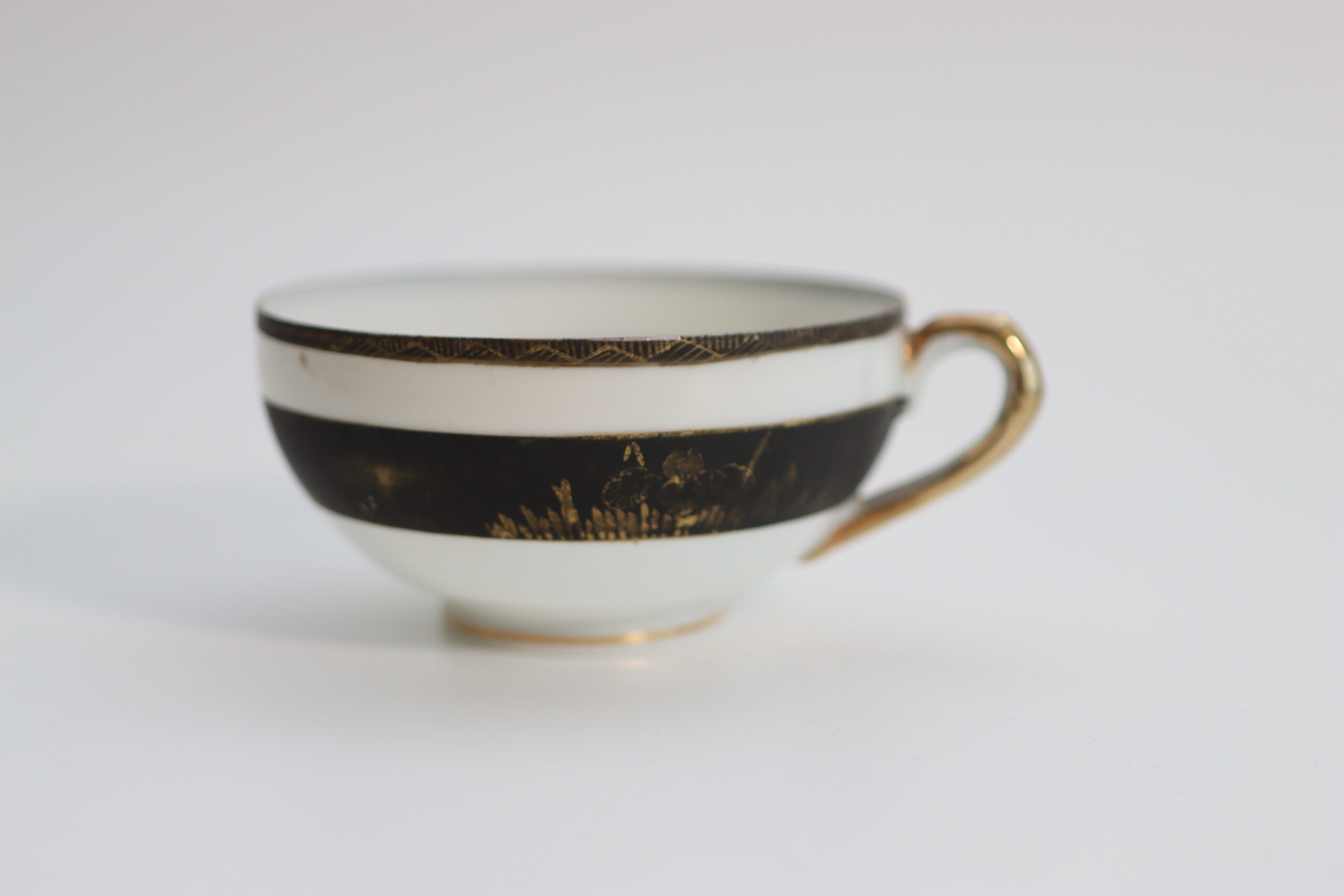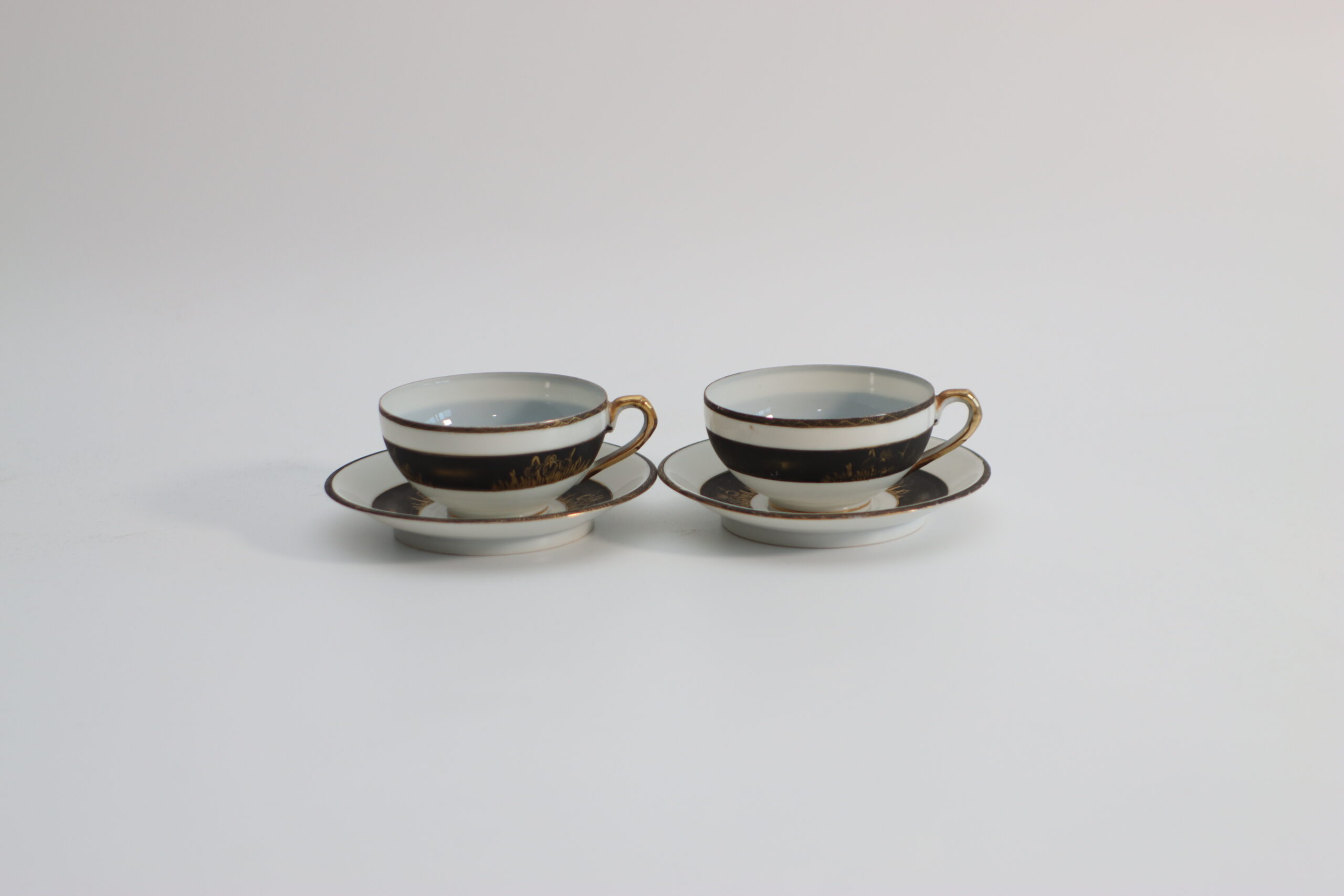 金縁装飾が施された、クラシックな佇まいのカップ&ソーサーセット。