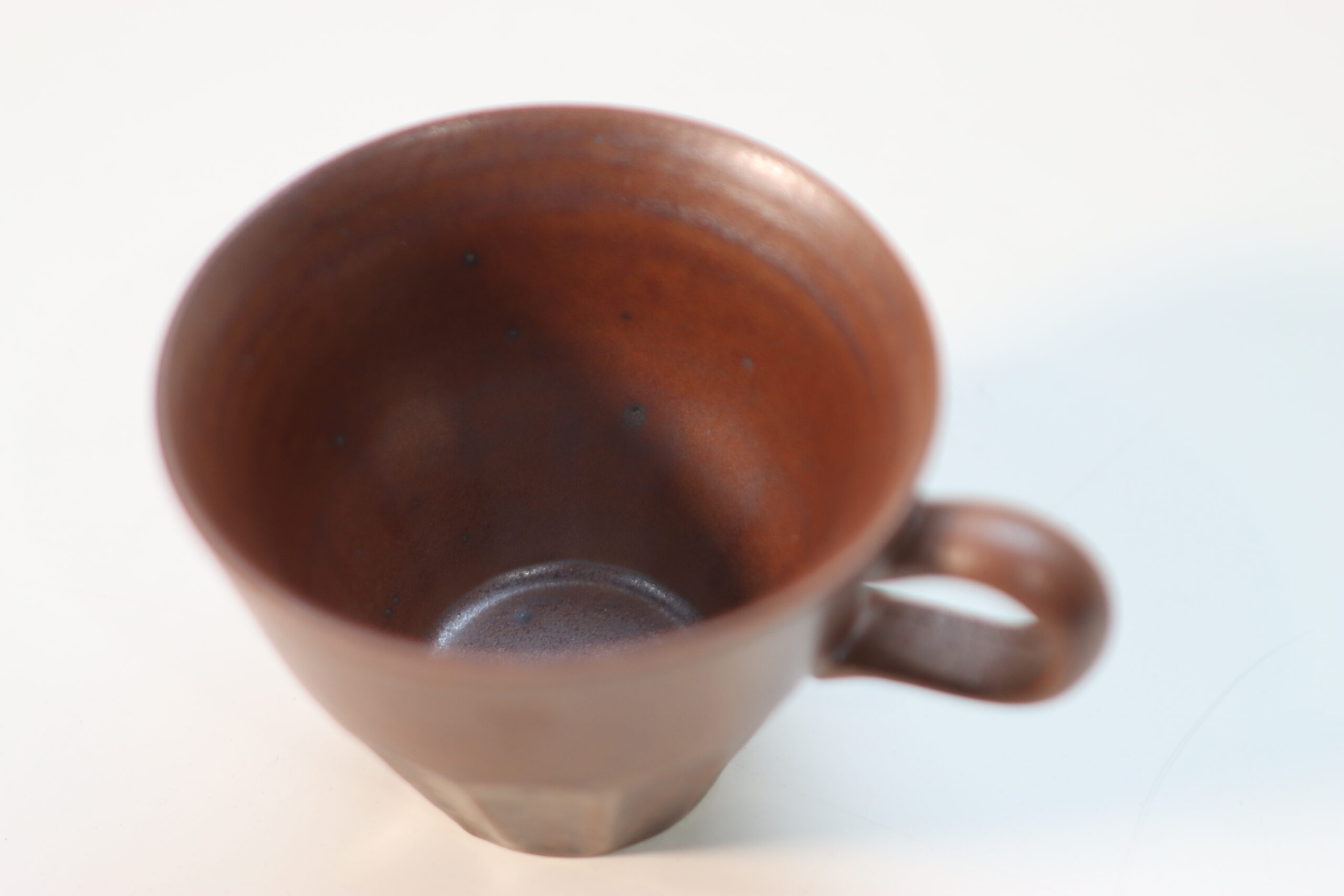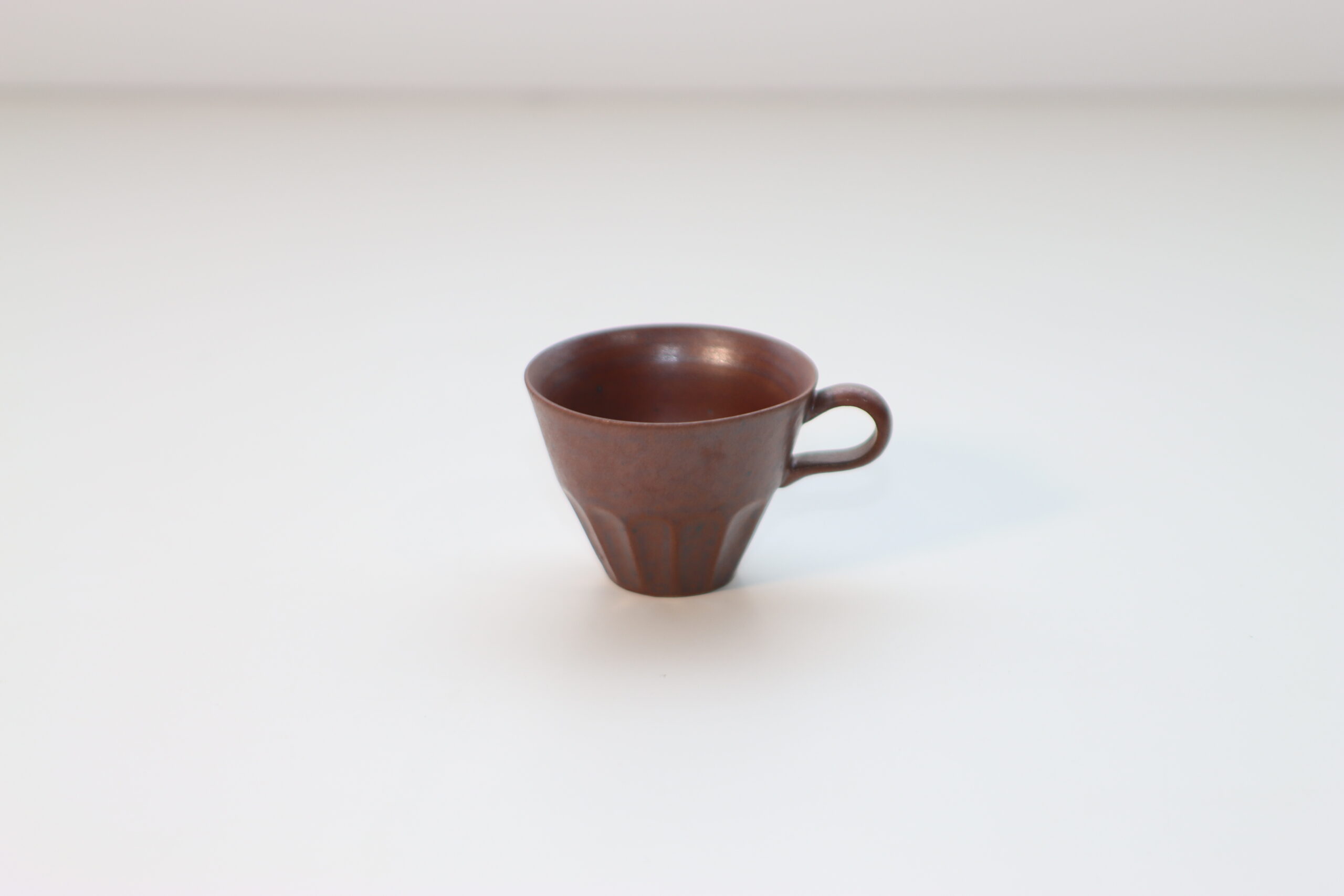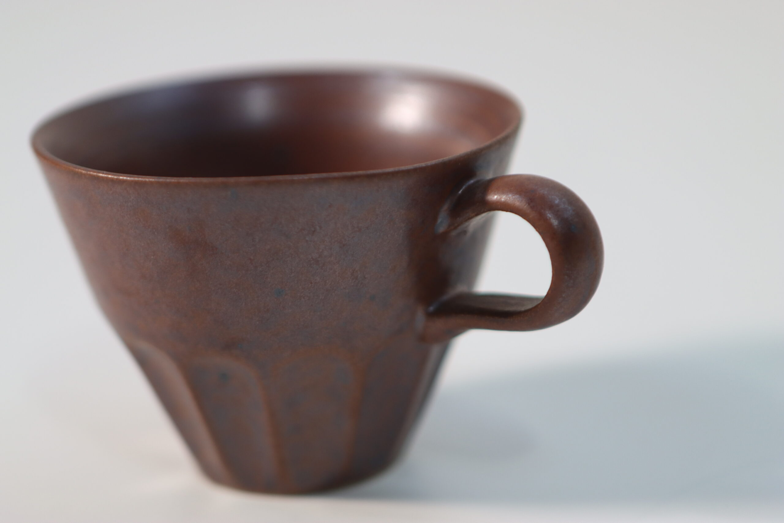 表情豊かなカッティング: カップ下部に施された縦方向の削り出しが、ブラウンの落ち着いた色調にリズムを与え、見る角度によって豊かな表情を見せます。
