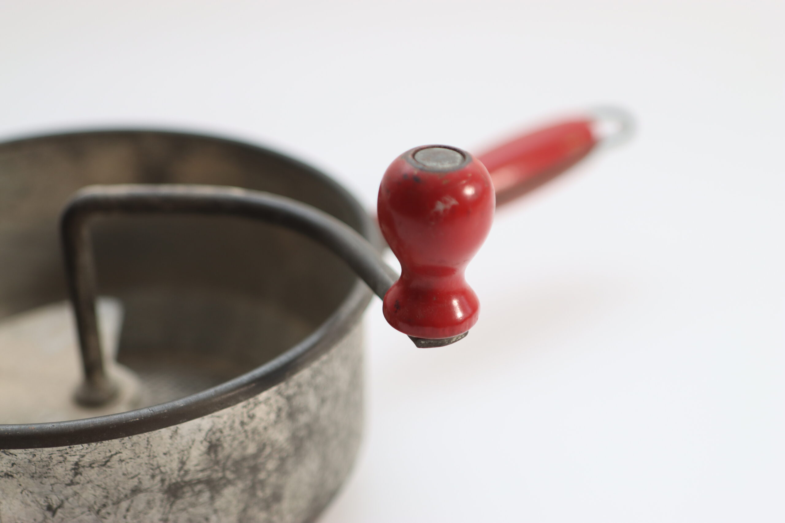 石製のボウルと金属ハンドルを組み合わせた、手動式の調理器具。