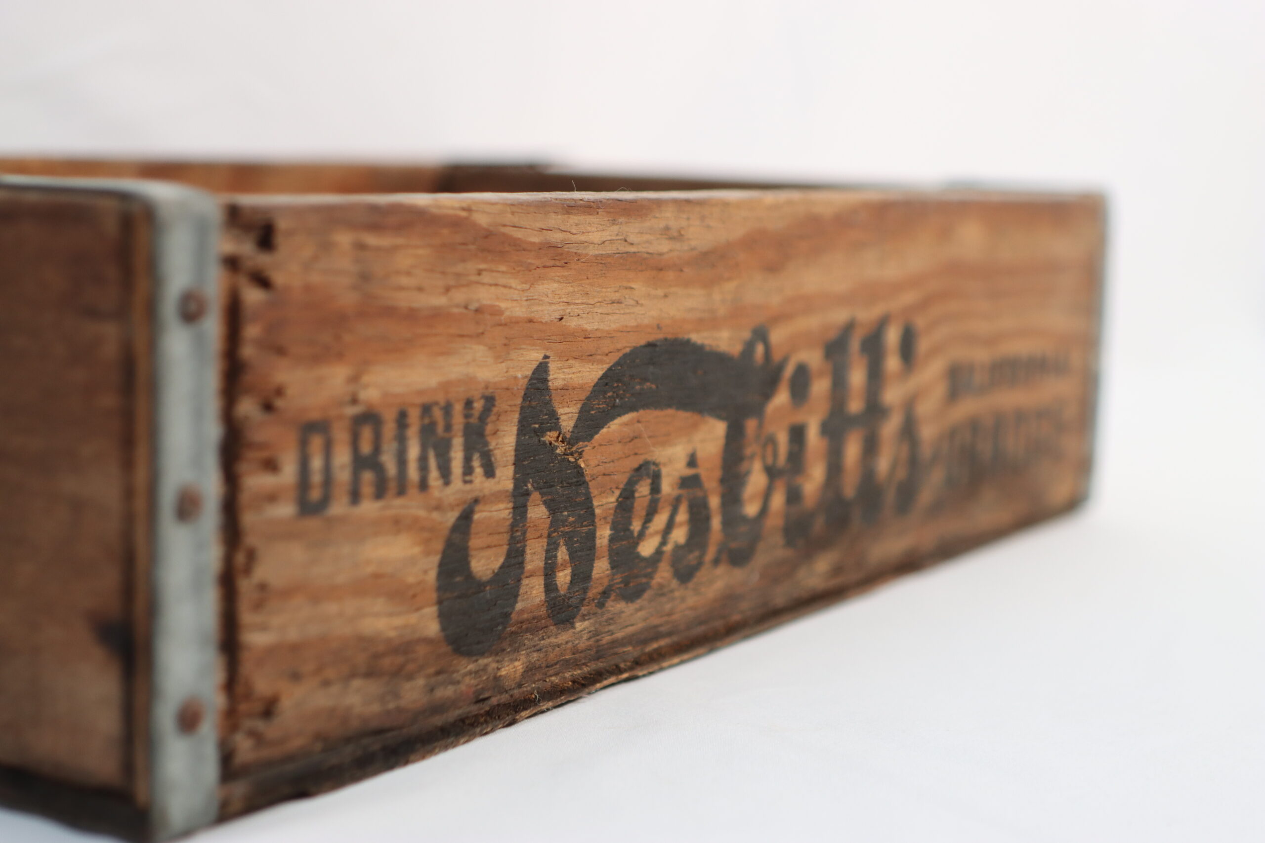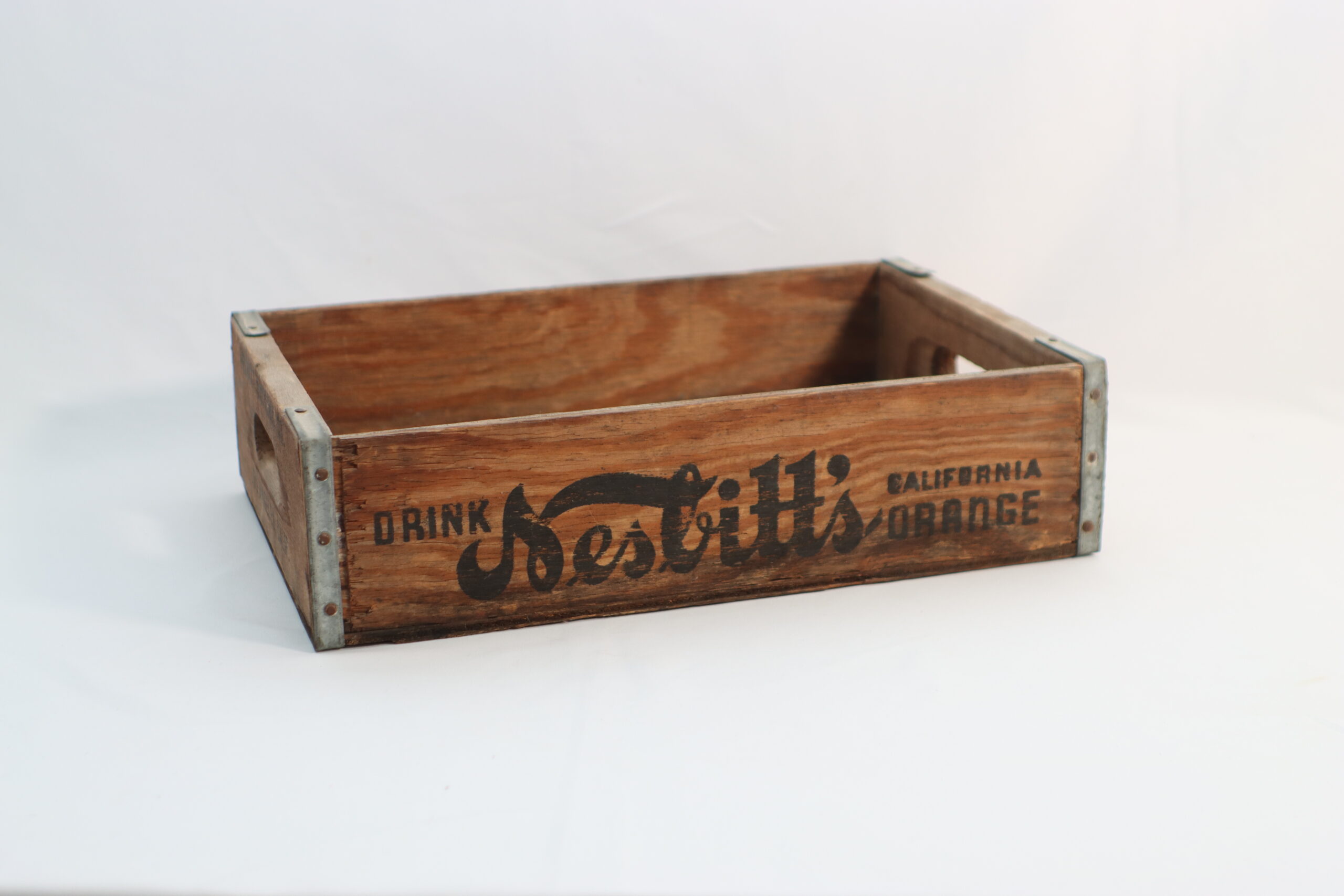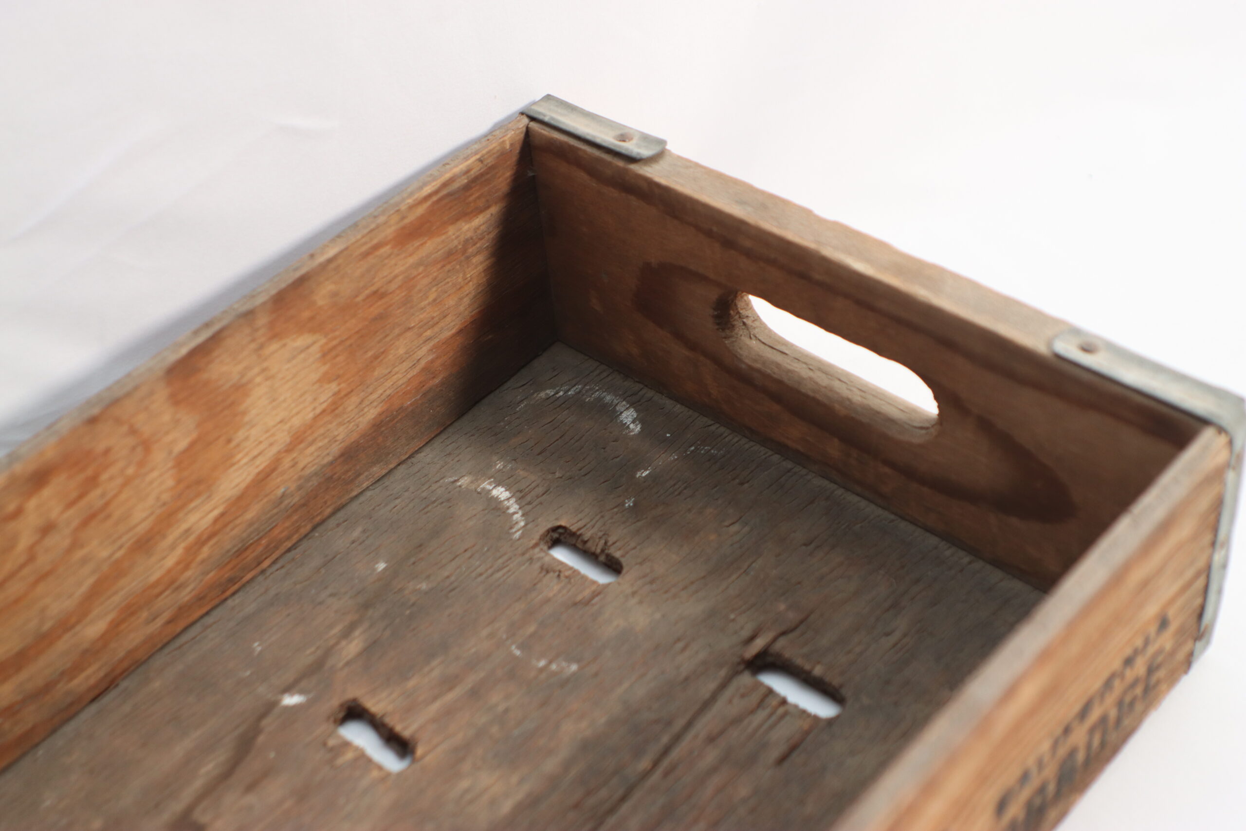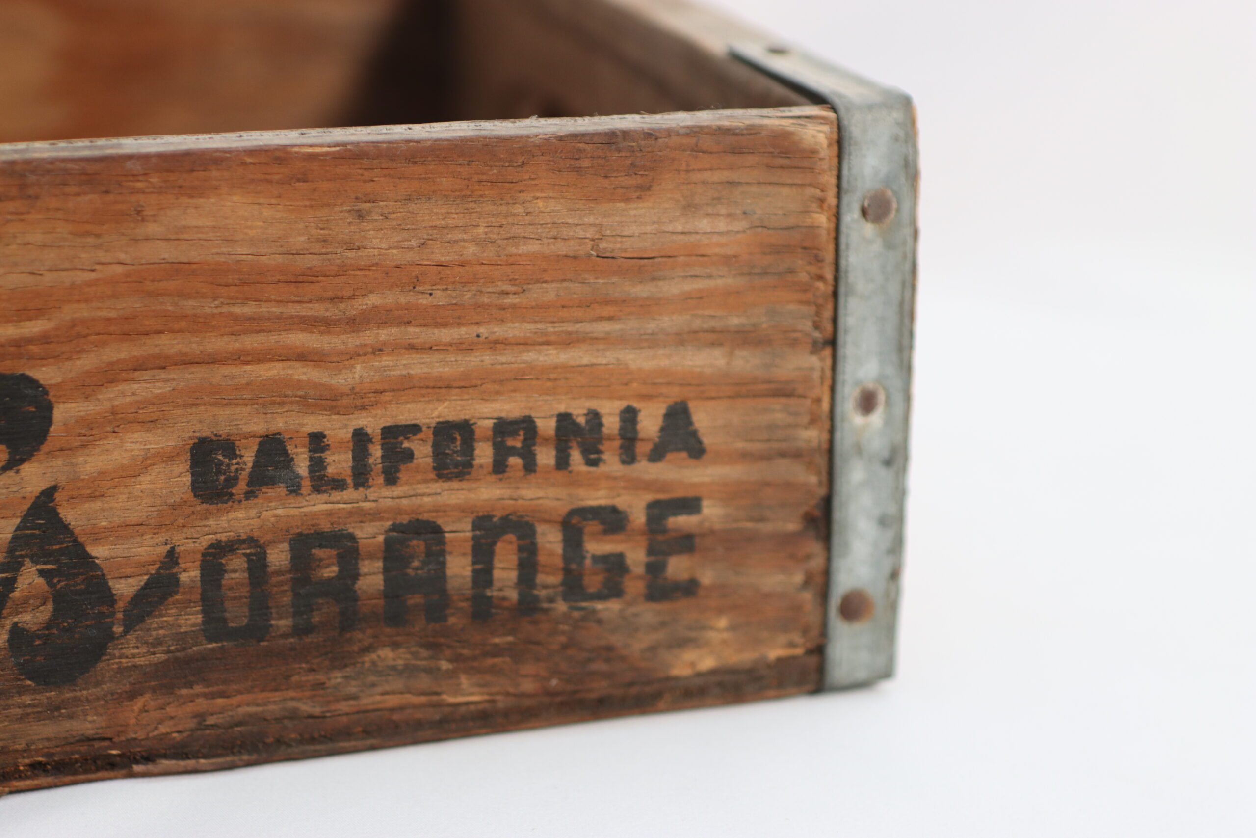 「カリフォルニア・オレンジ」のヴィンテージロゴが刻まれた、無骨で味わい深い木製ボックスです。収納道具としてだけでなく、高さを出すための「ステージ」としても極めて優秀です。