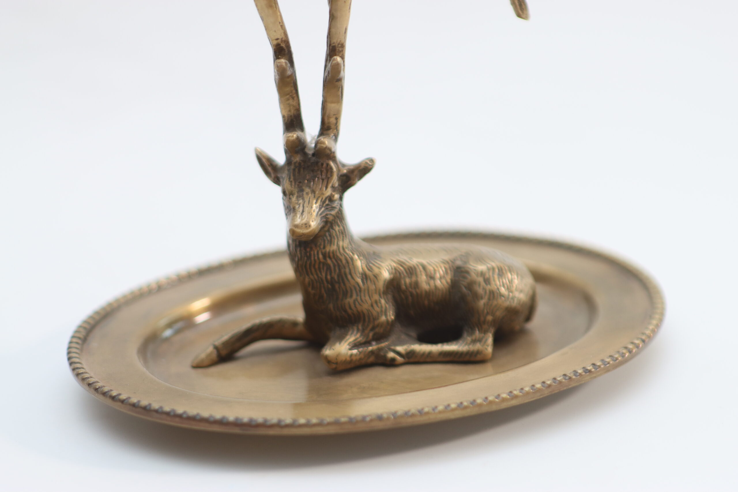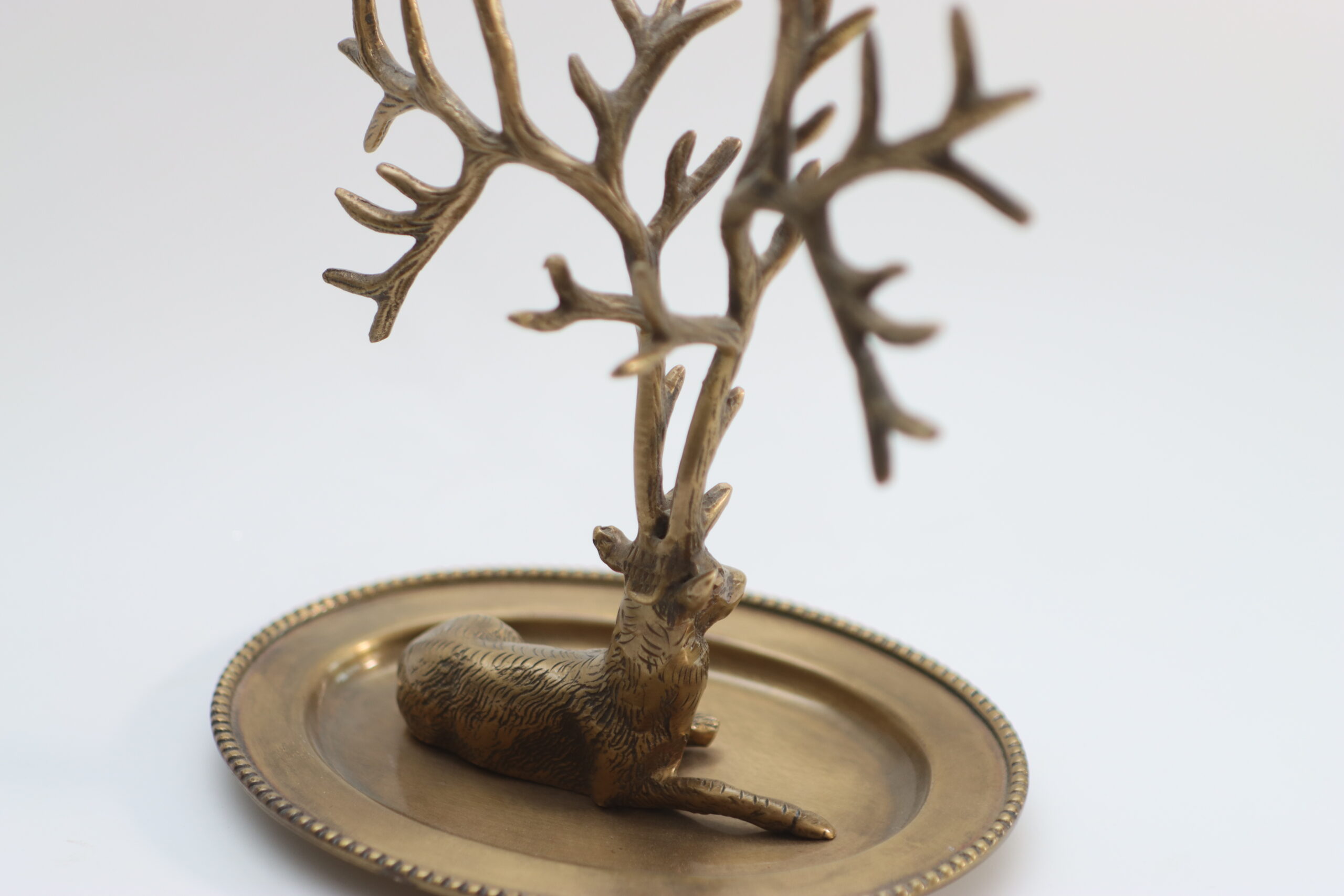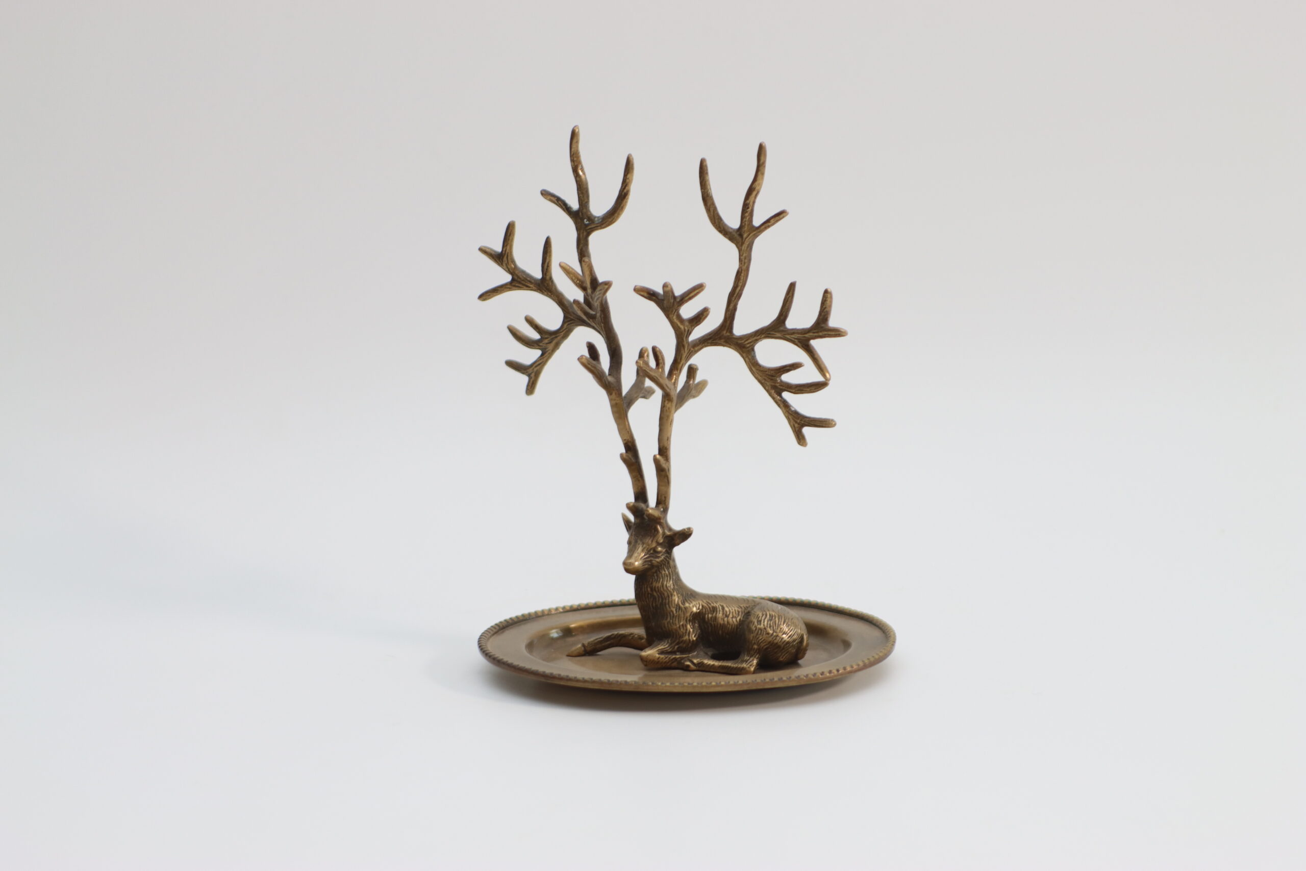 鹿をモチーフにした立体オブジェと、枝分かれした角を組み合わせたジュエリースタンド。