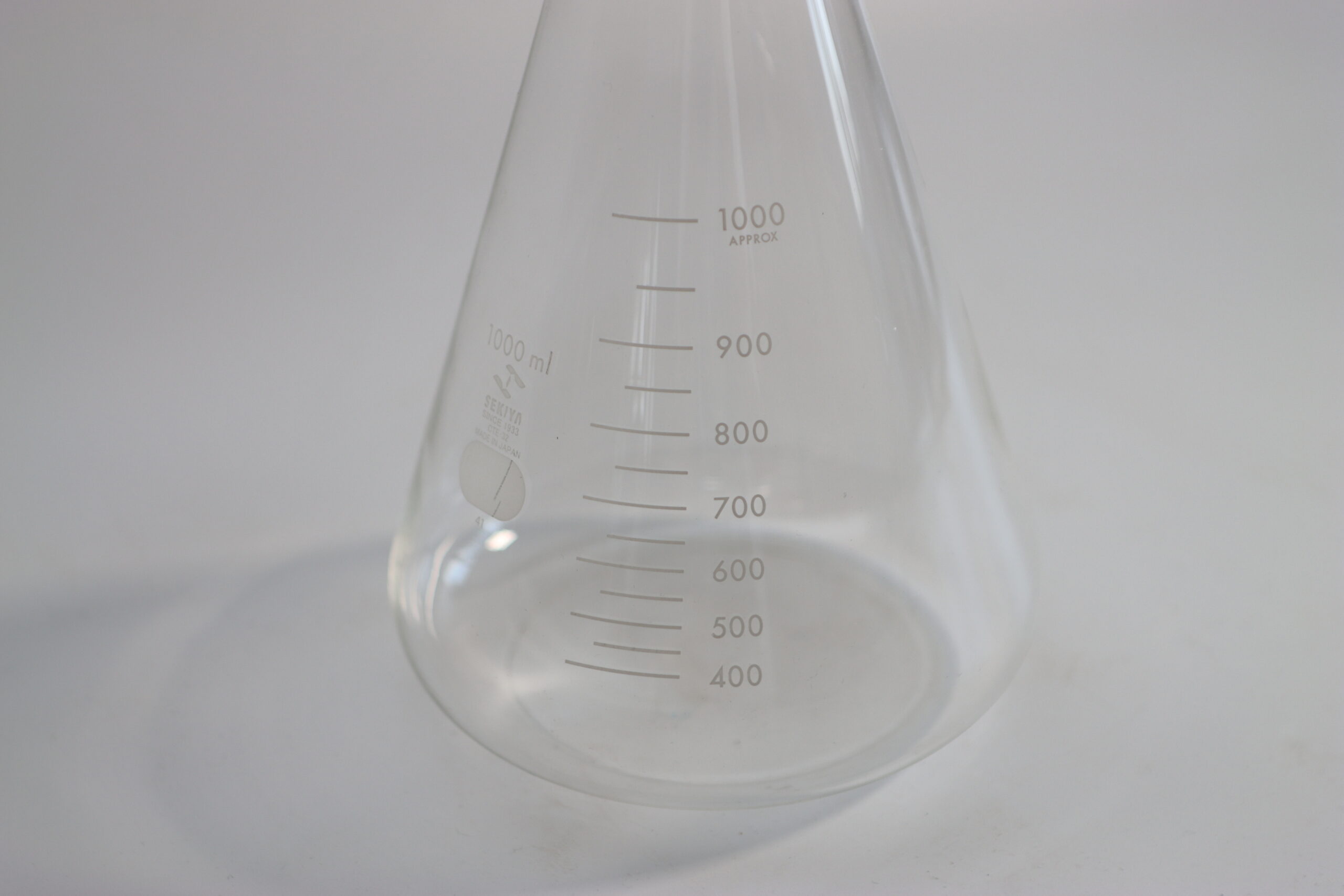 理化学器具をモチーフにした、シンプルなフラスコ型ガラス。