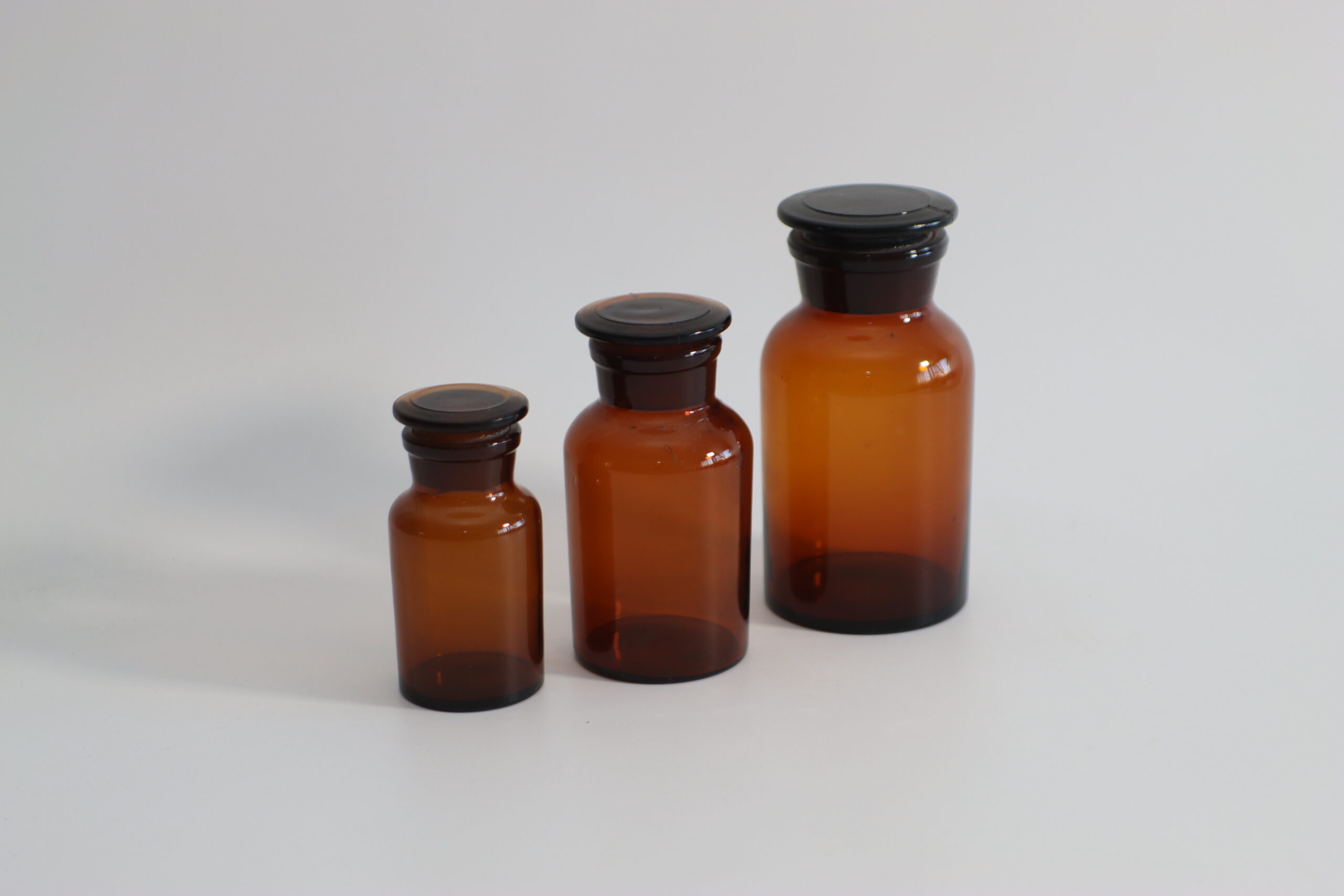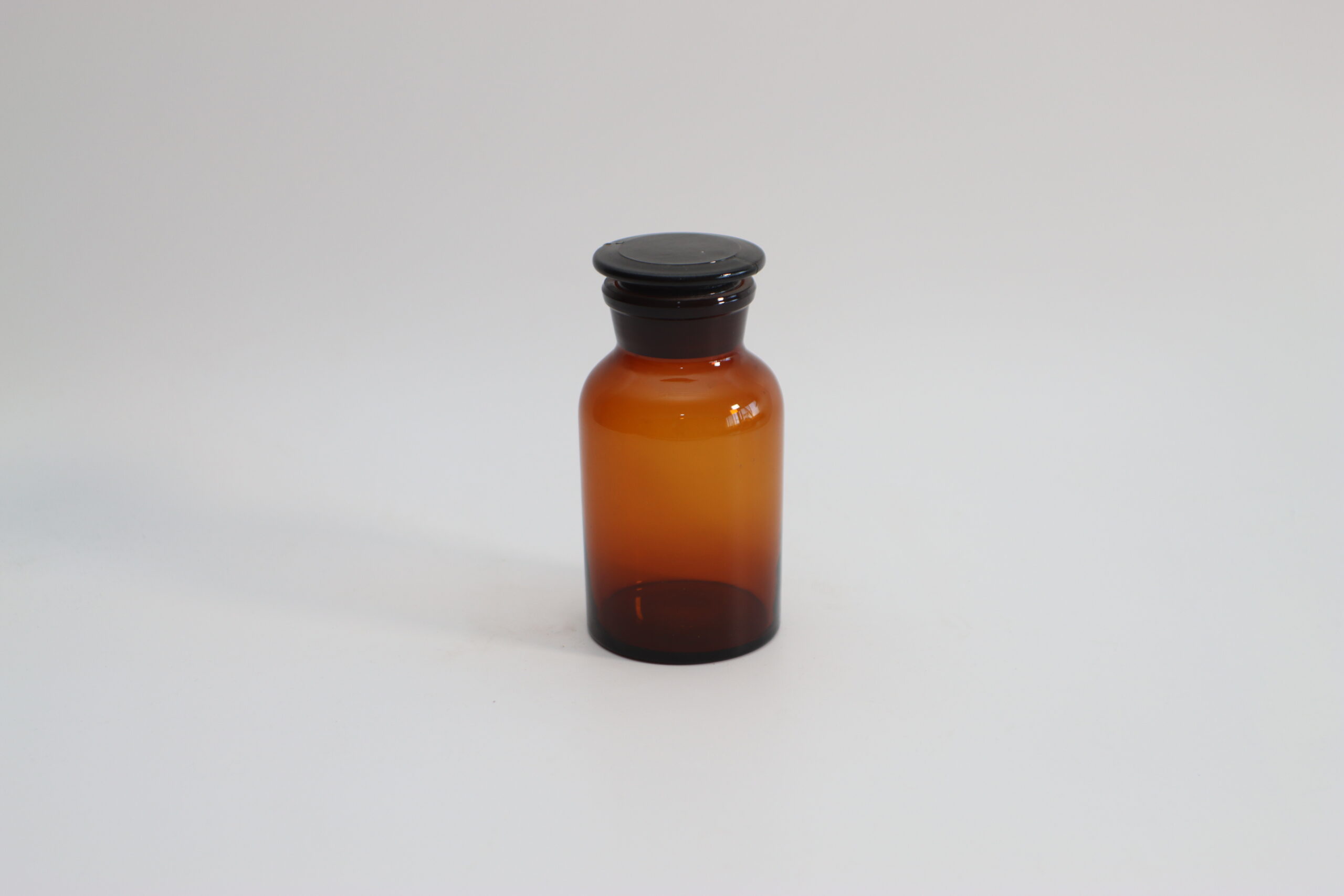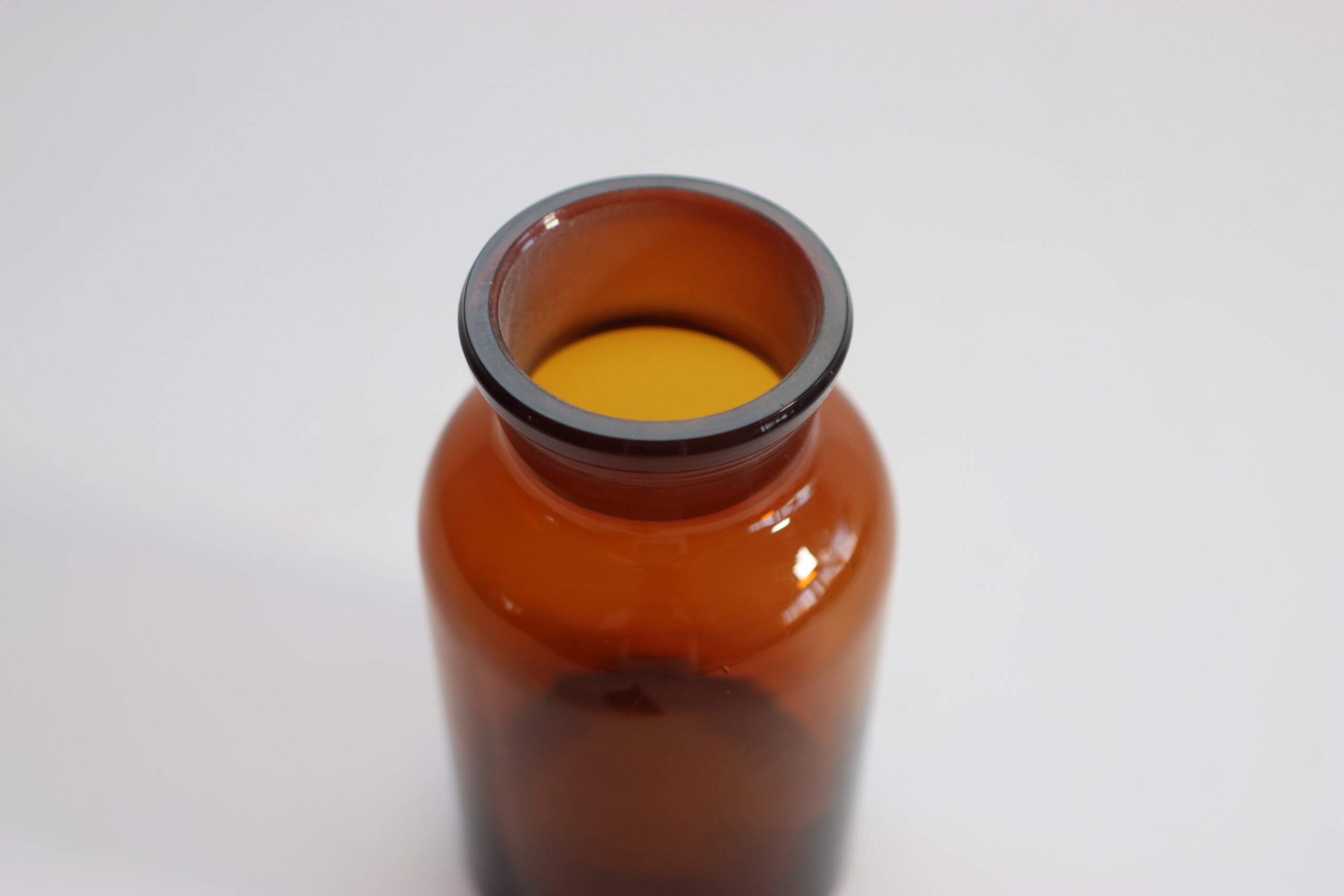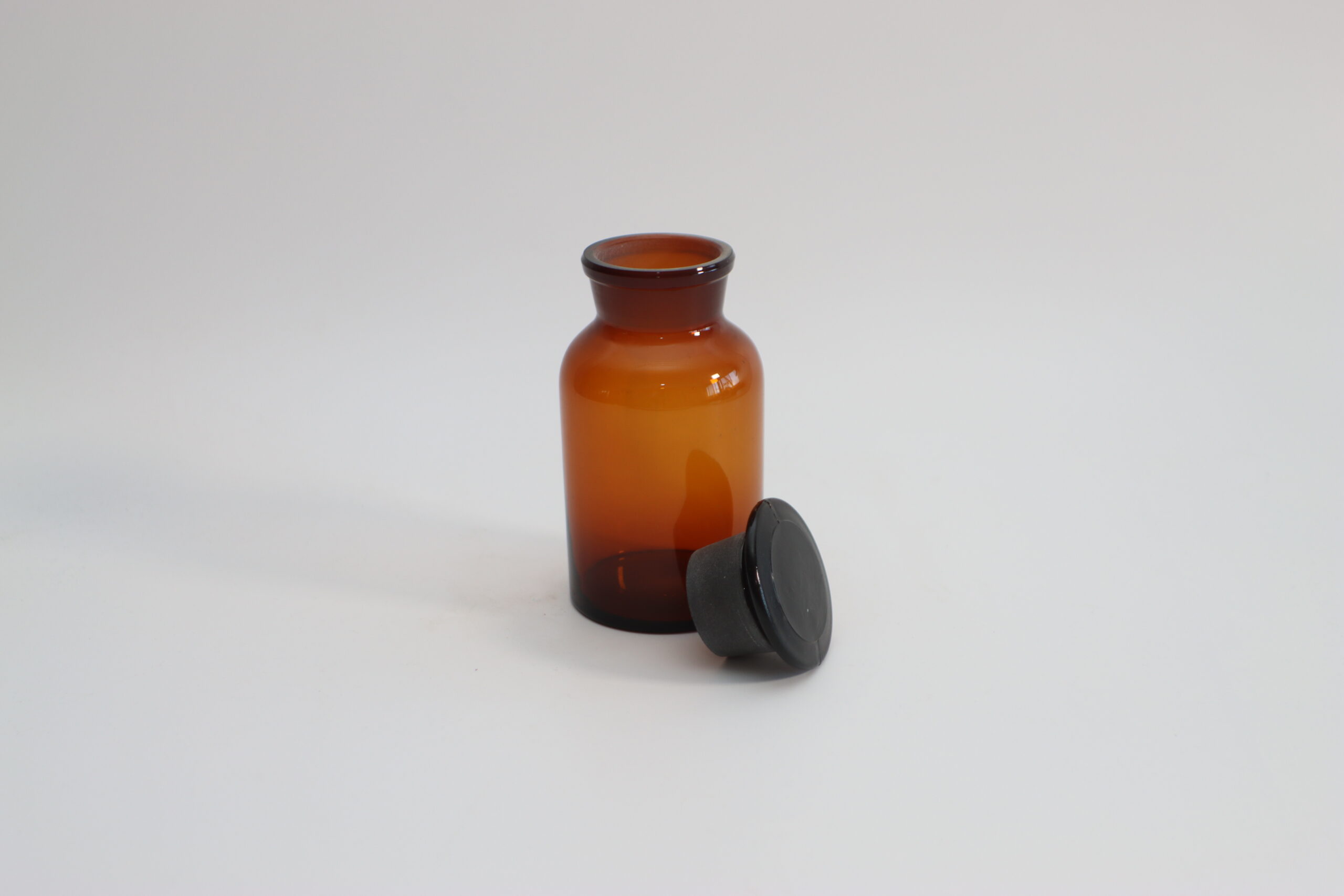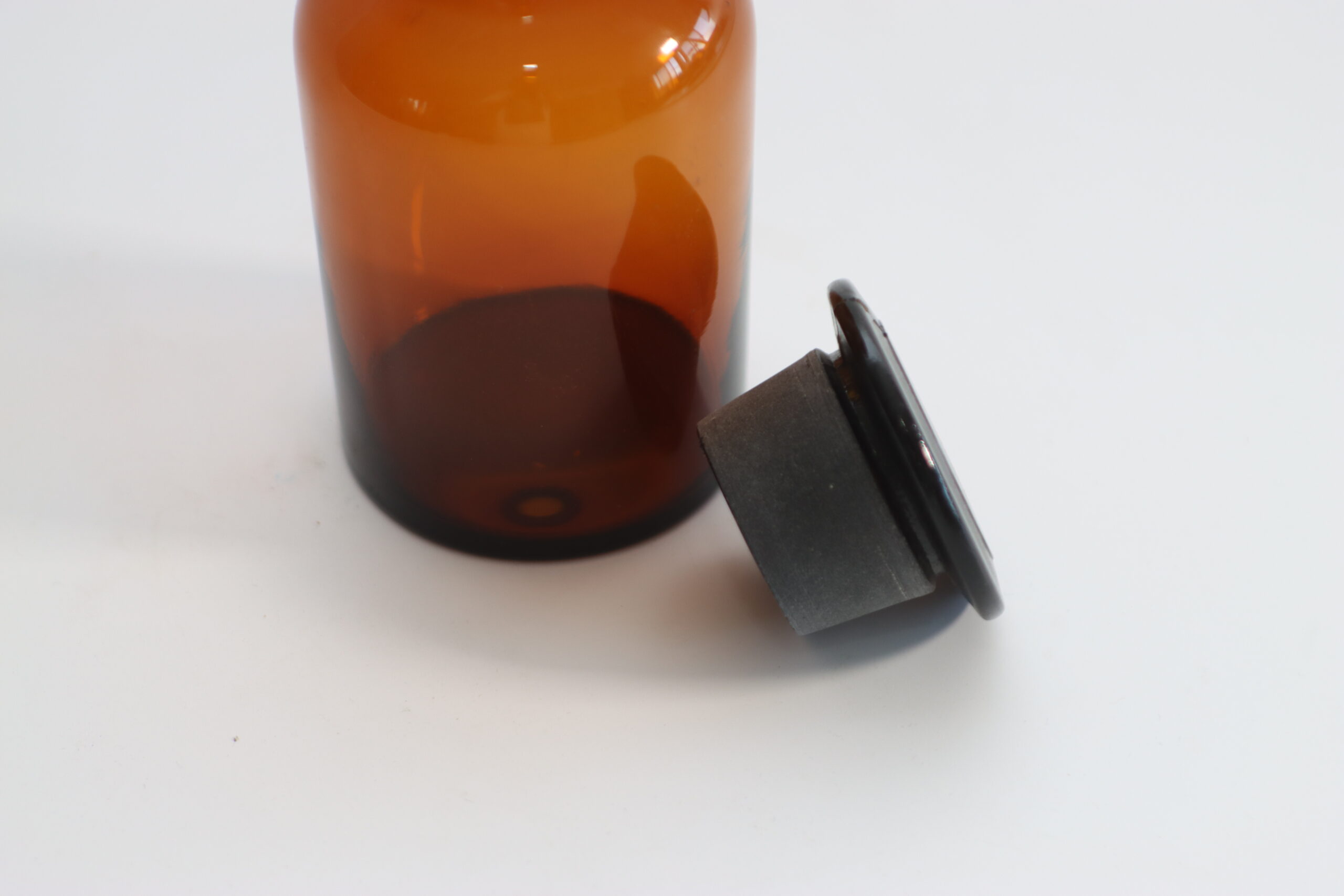 アンバー(ブラウン)ガラスのデキャンタボトル。