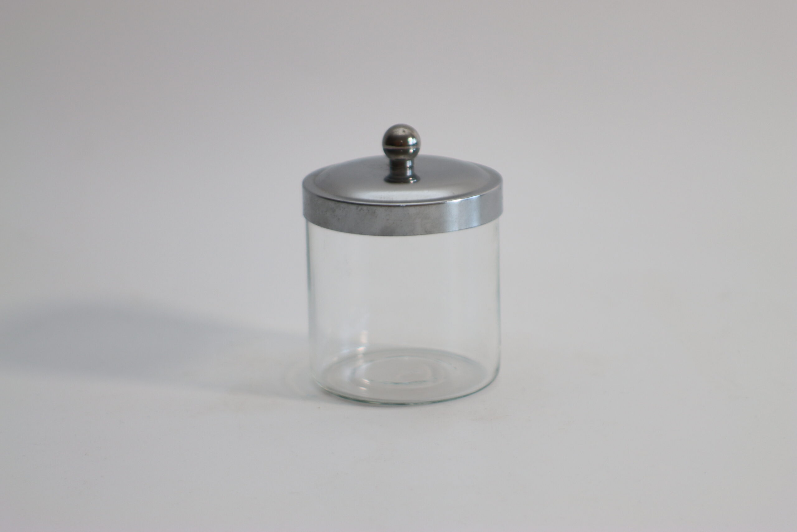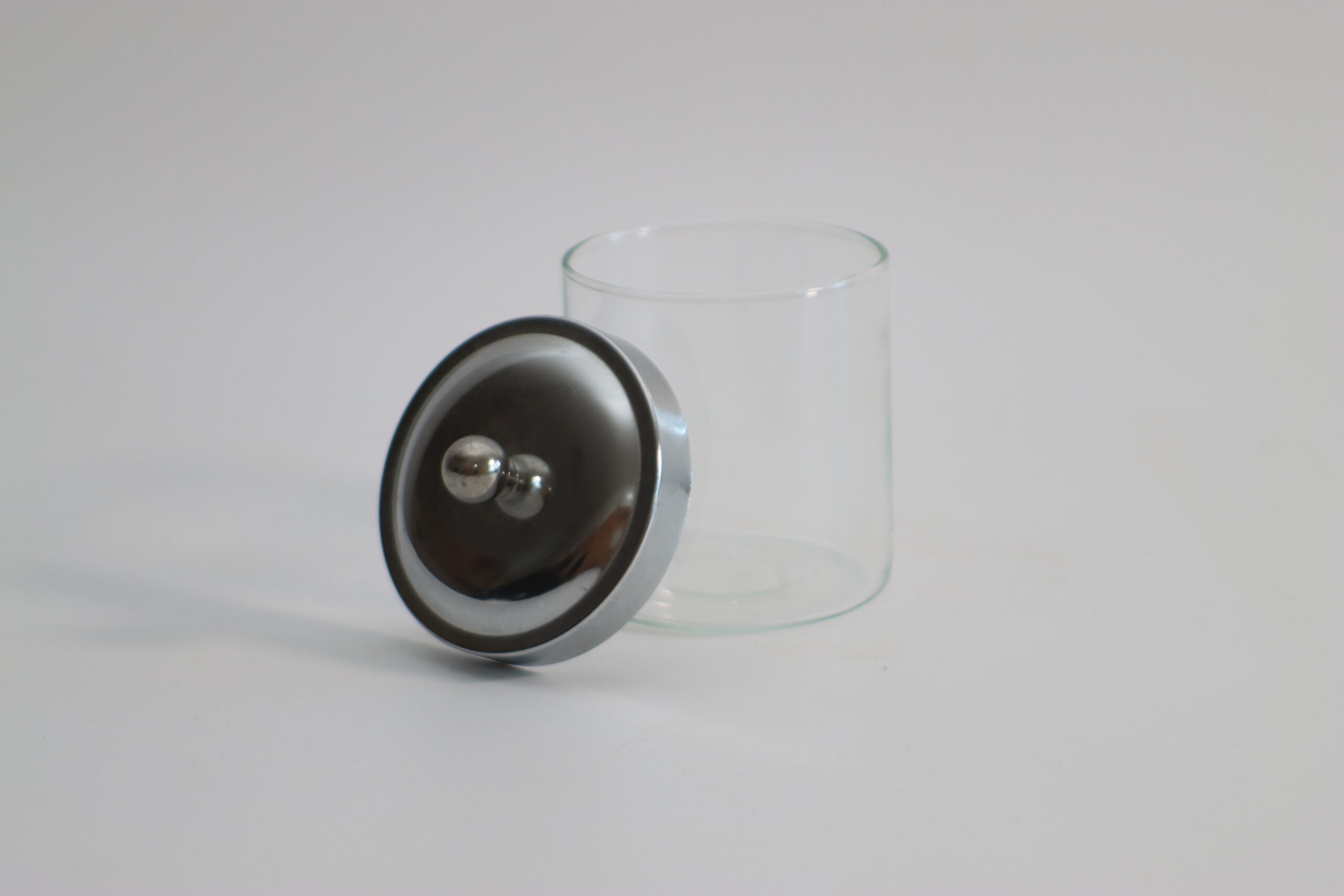 クリアガラスのボディに、金属製リッドを組み合わせたシンプルなキャニスター。