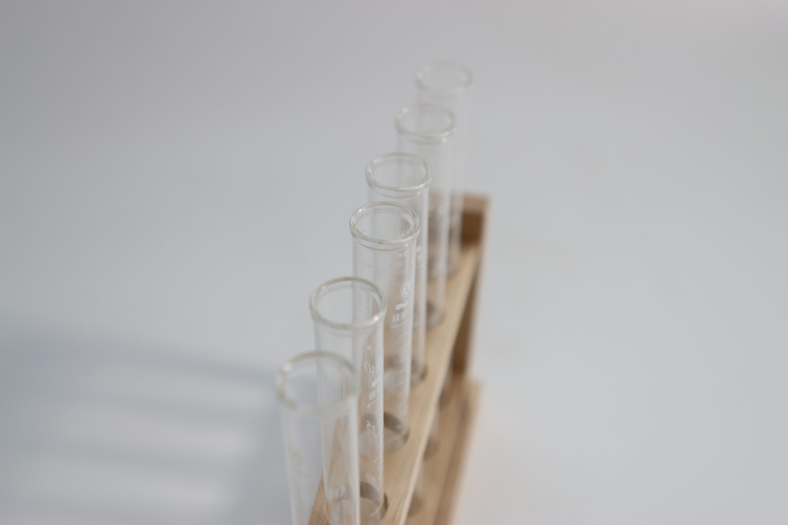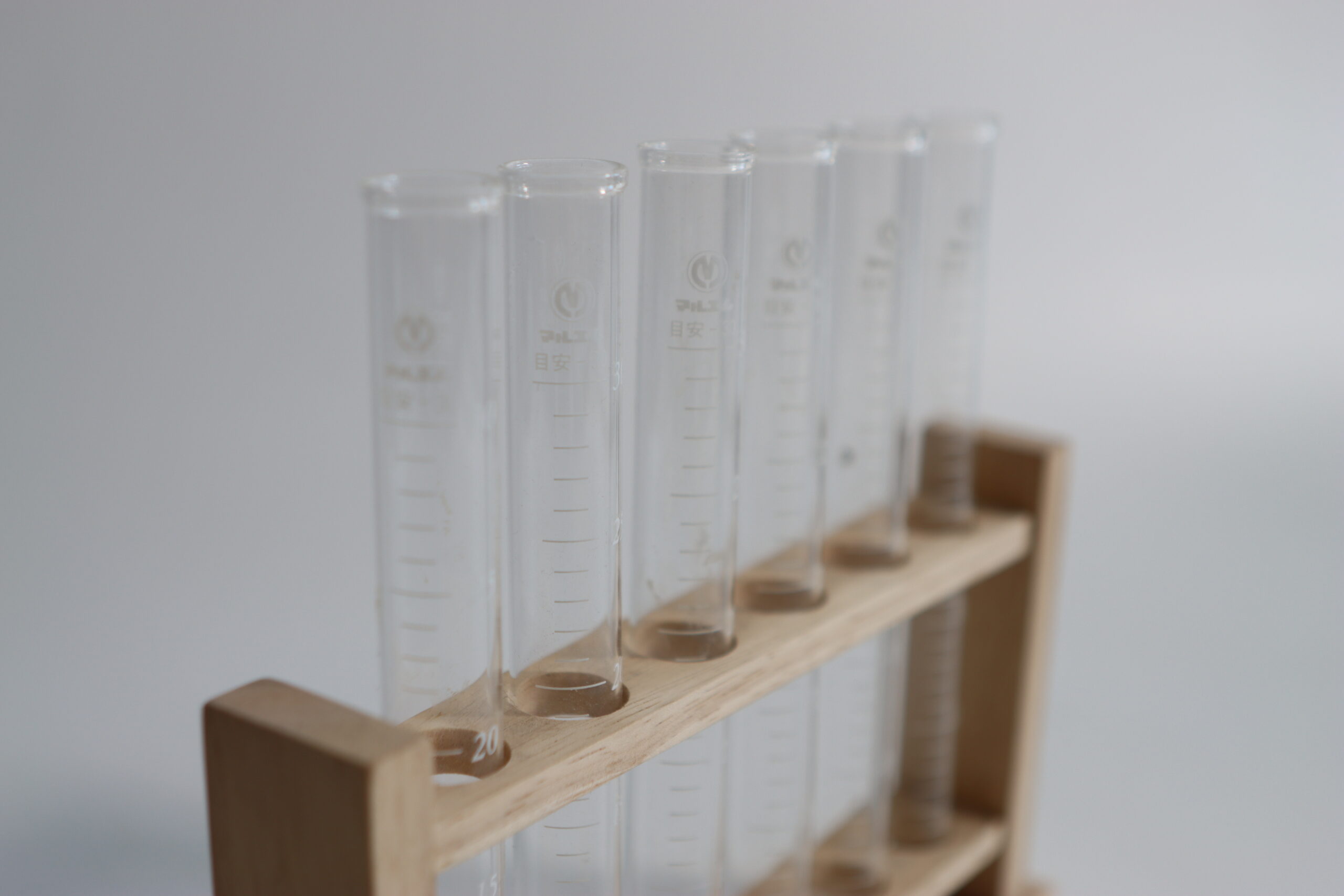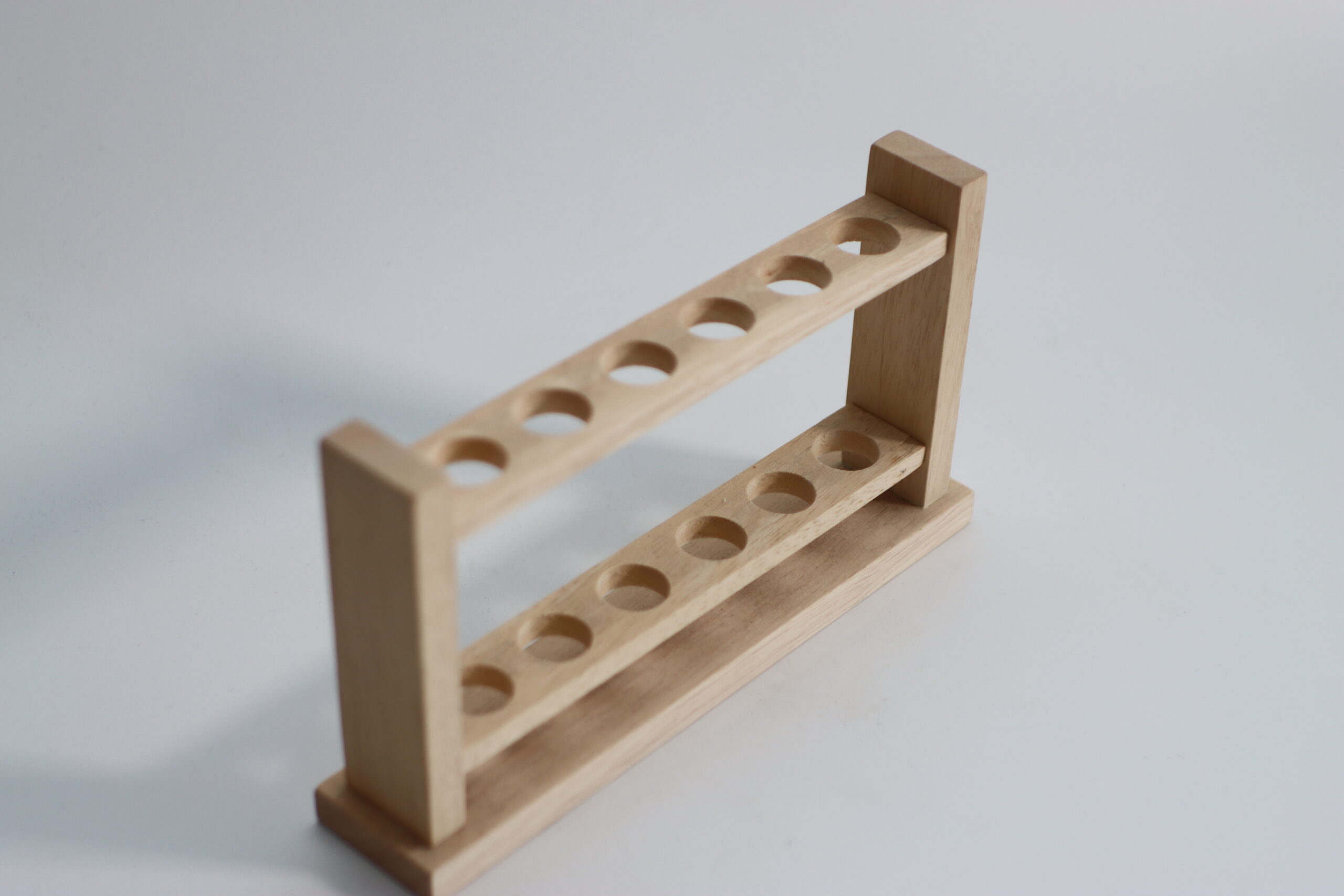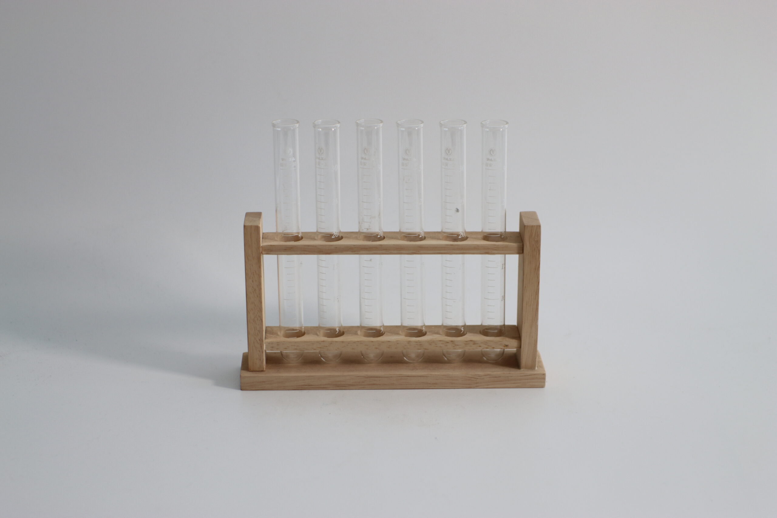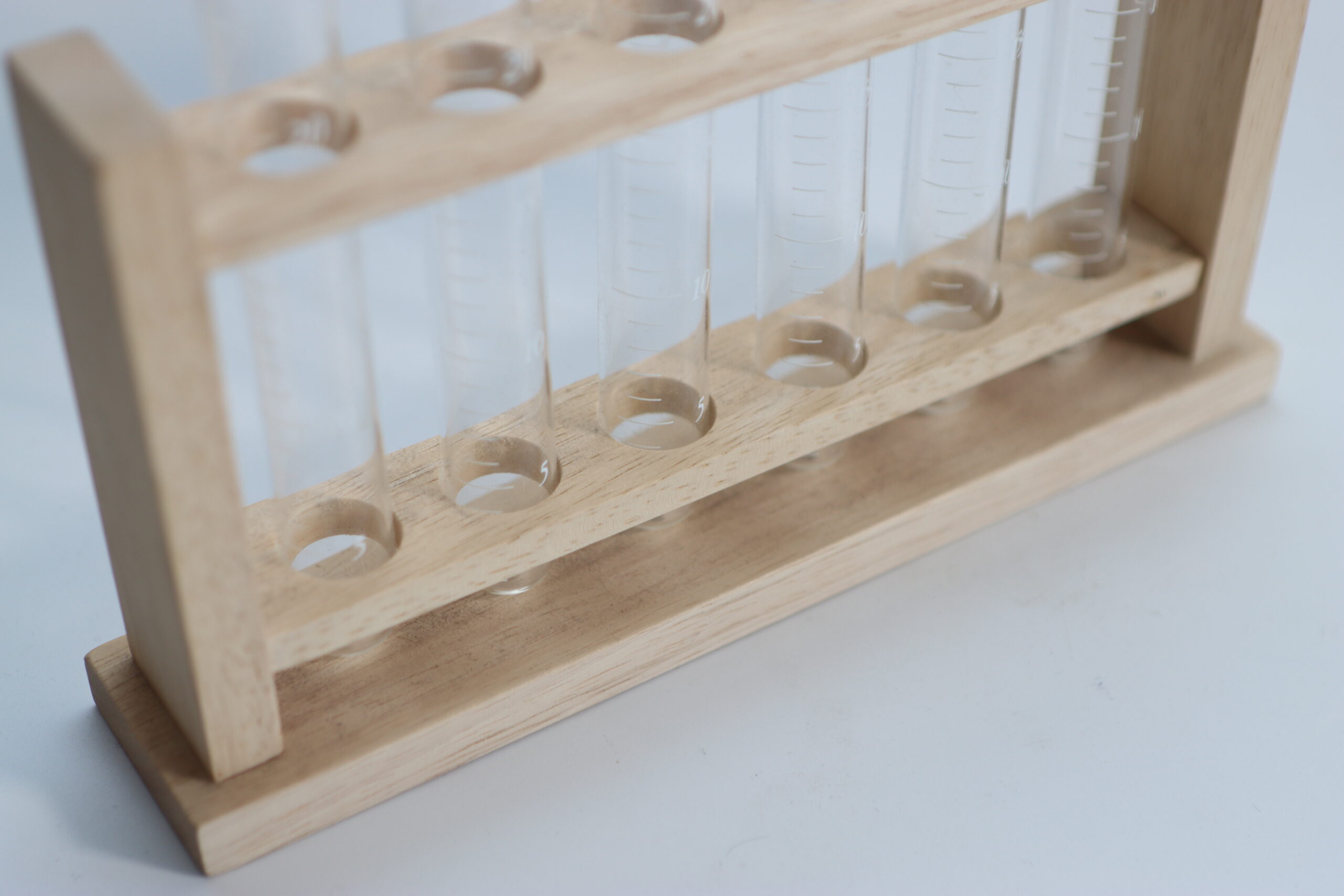 6本SETの試験管を整然と並べられる、木製のラボスタイルスタンド。