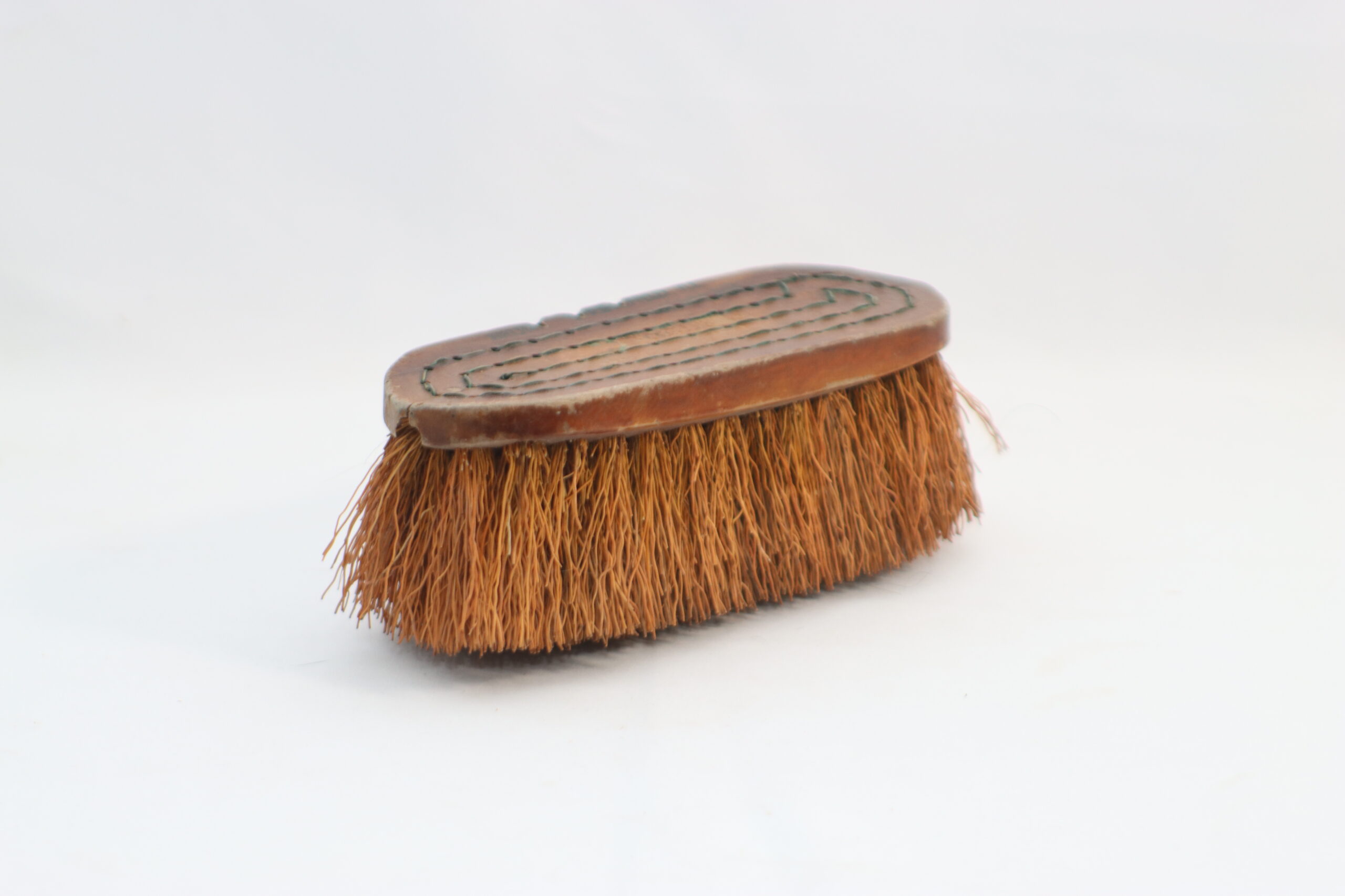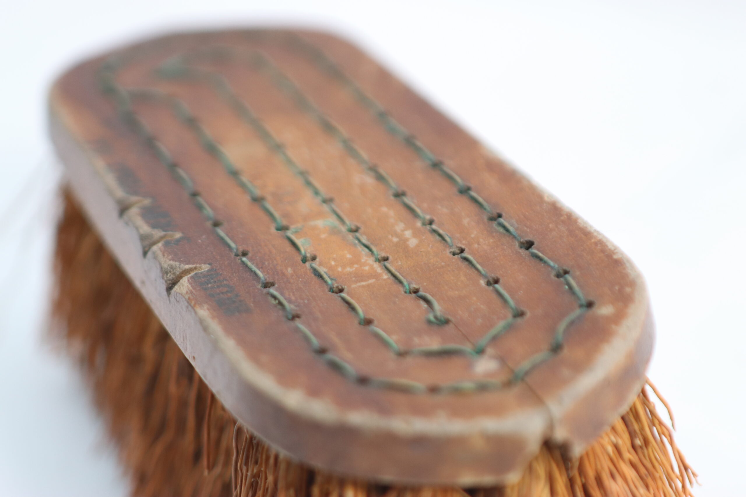 木製の土台に、整然と並ぶステッチと「BRUNK SPRINGFIELD」の刻印が残る、歴史を感じさせるクリーニングブラシです。