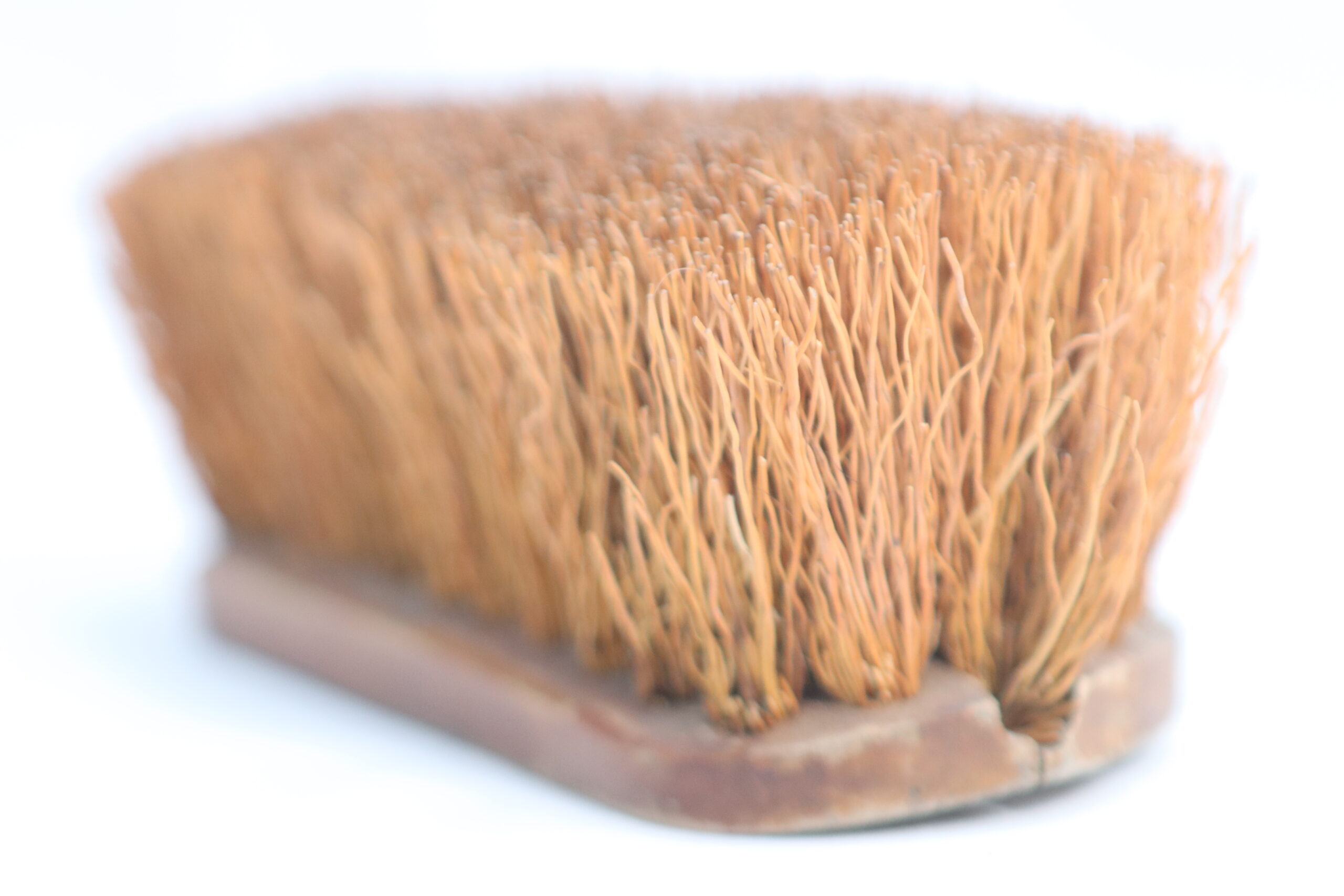 経年変化により飴色に育った木肌と、張りのあるブラシ毛の組み合わせが、画面に「誠実な手仕事」と「清潔感のあるヴィンテージ」という独特のニュアンスを加えます。