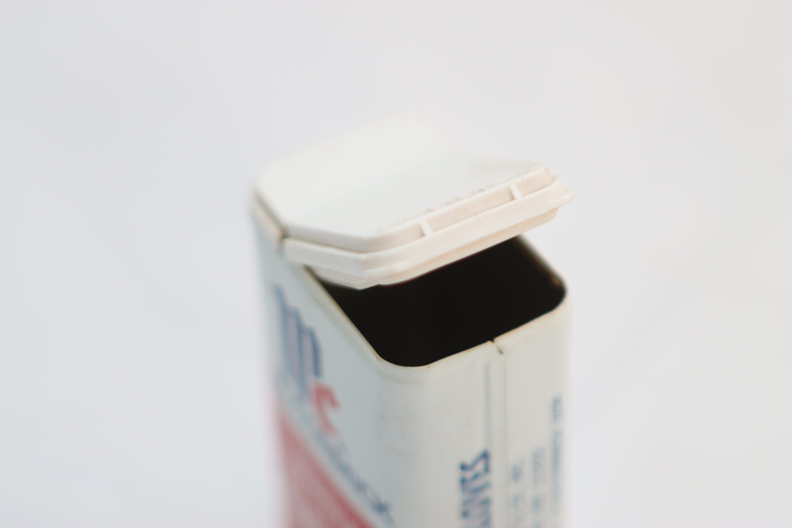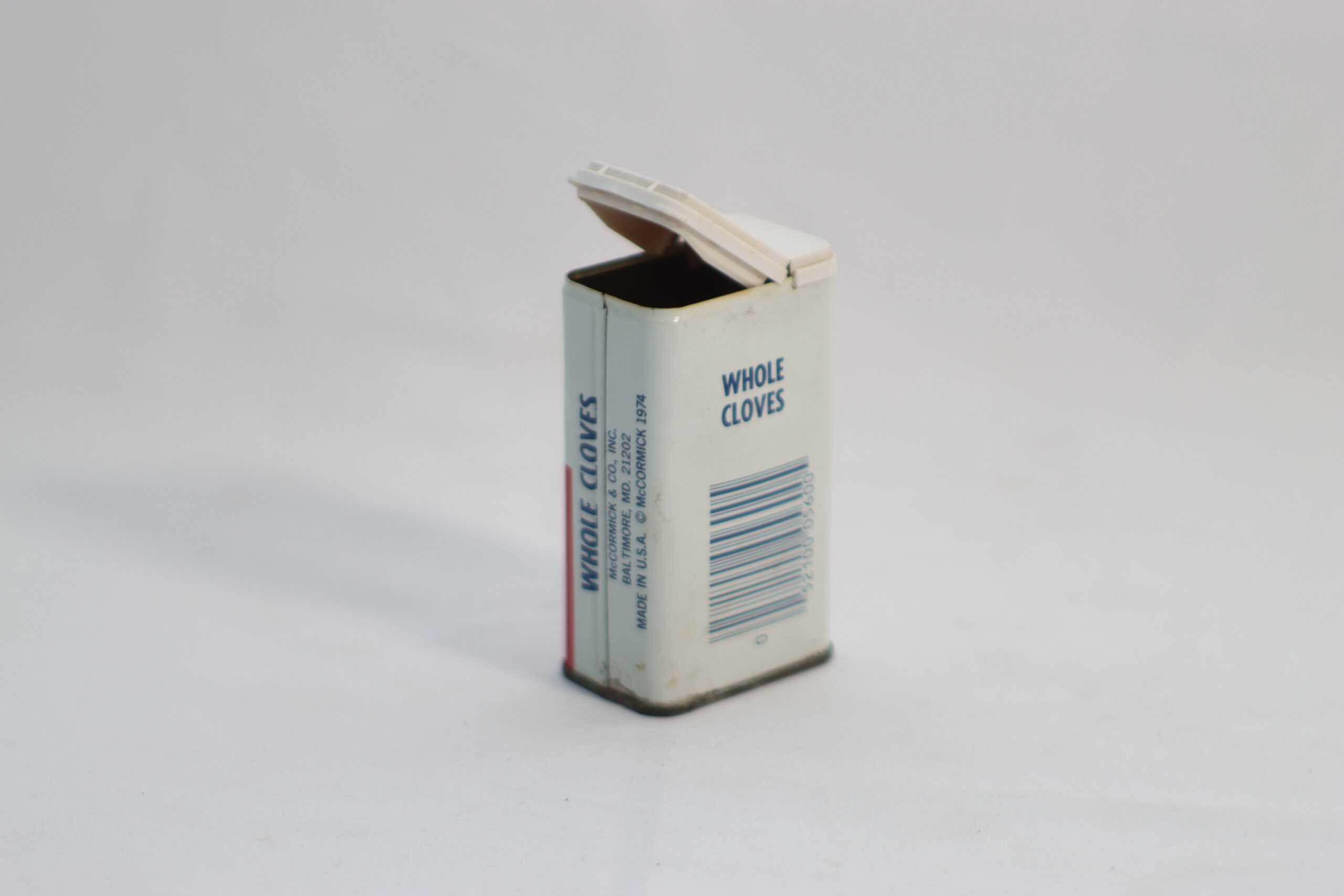 「クリーンなホワイトと鮮烈なレッドの配色が、モダンな印象を与えるスパイス缶です。時代を問わない普遍的なデザインで、幅広いジャンルの撮影に対応可能です。」