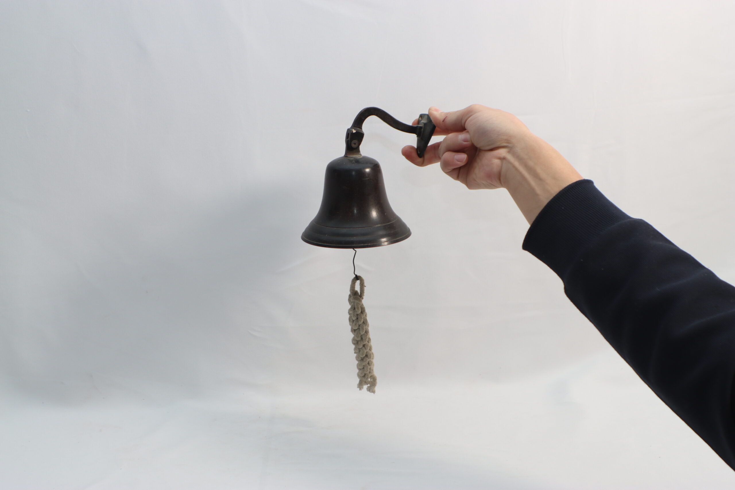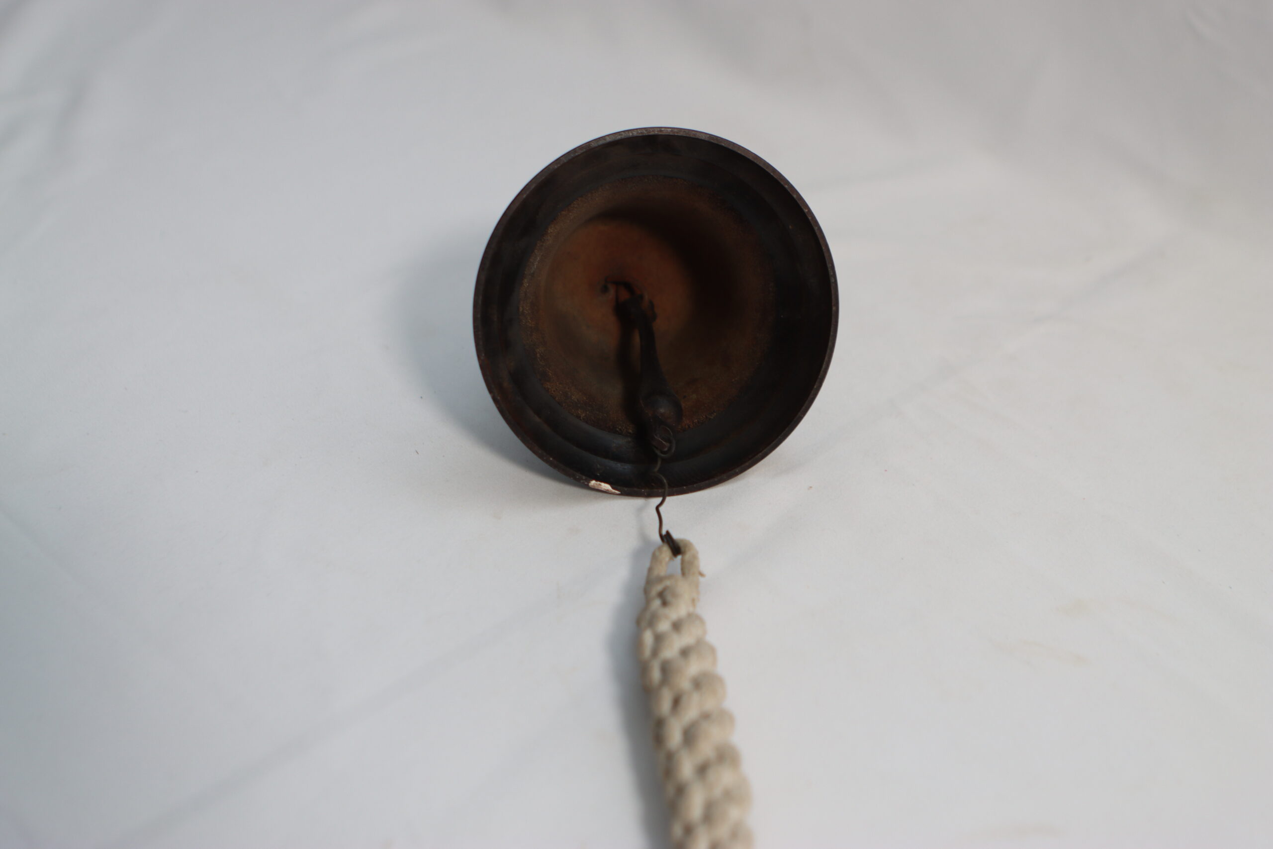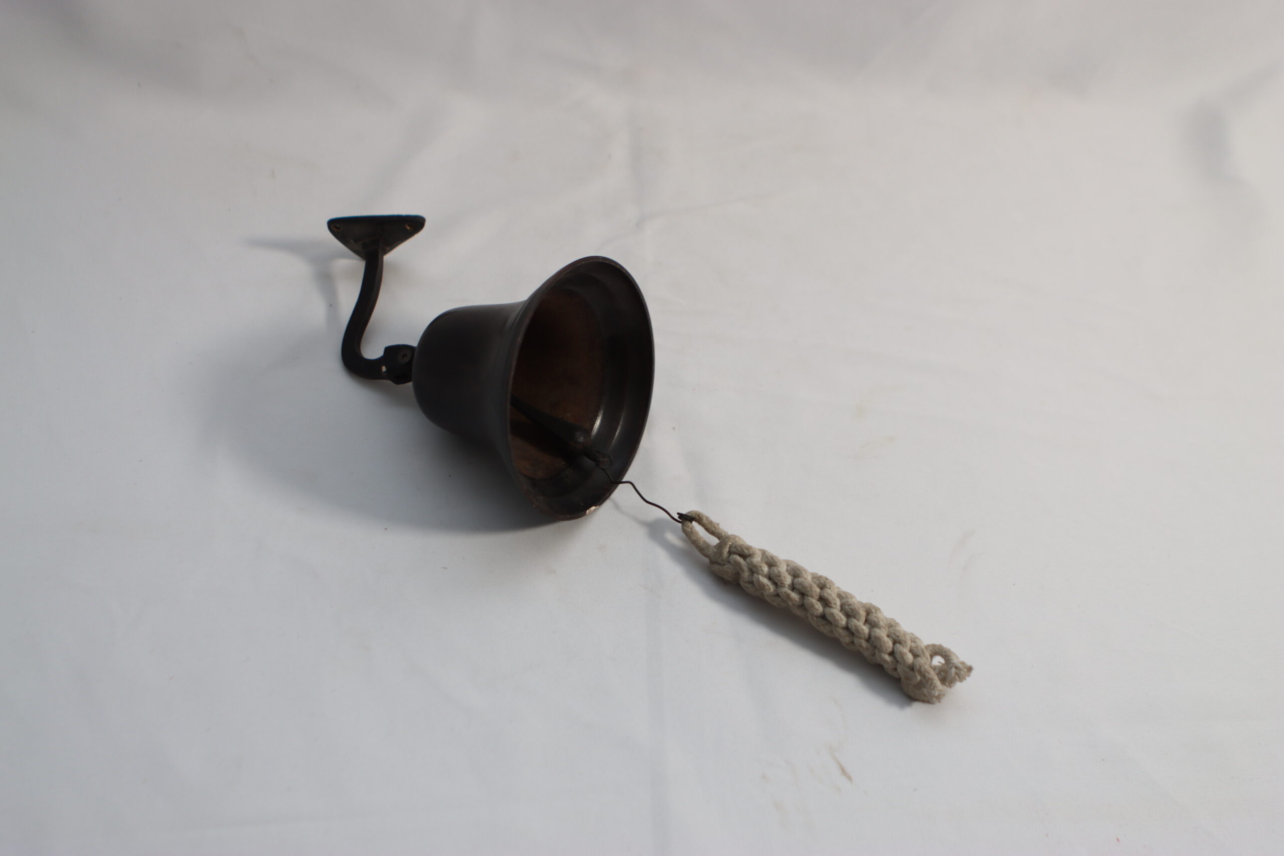 壁面に取り付け可能なブラケットと、編み込みのロープを備えたクラシックな呼び鈴です。
