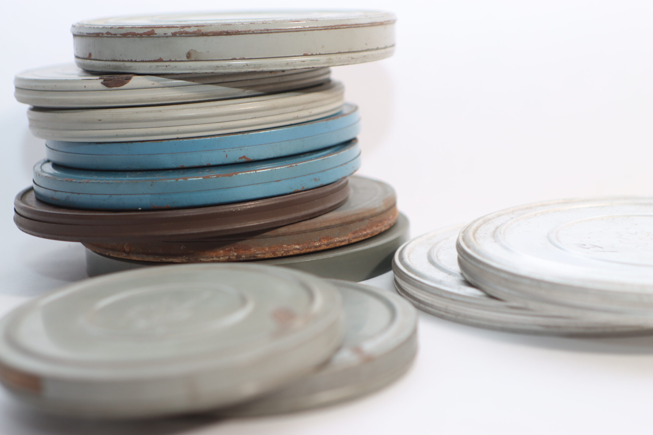 「映画の黄金時代を想起させる、圧倒的なボリューム感のヴィンテージ・フィルム缶12枚セットです。大小異なるサイズと、経年変化による錆や塗装の剥げ(パティーナ)が、現行品では決して出せない**『本物の重厚感』と『物語性』**を画面に与えます。 スタッキング(積み上げ)による高さ出しや、ランダムに配置しての余白埋めなど、プロップスとしての汎用性は抜群です。12枚という数があるからこそ、奥行きのあるダイナミックな空間構成を可能にします。」