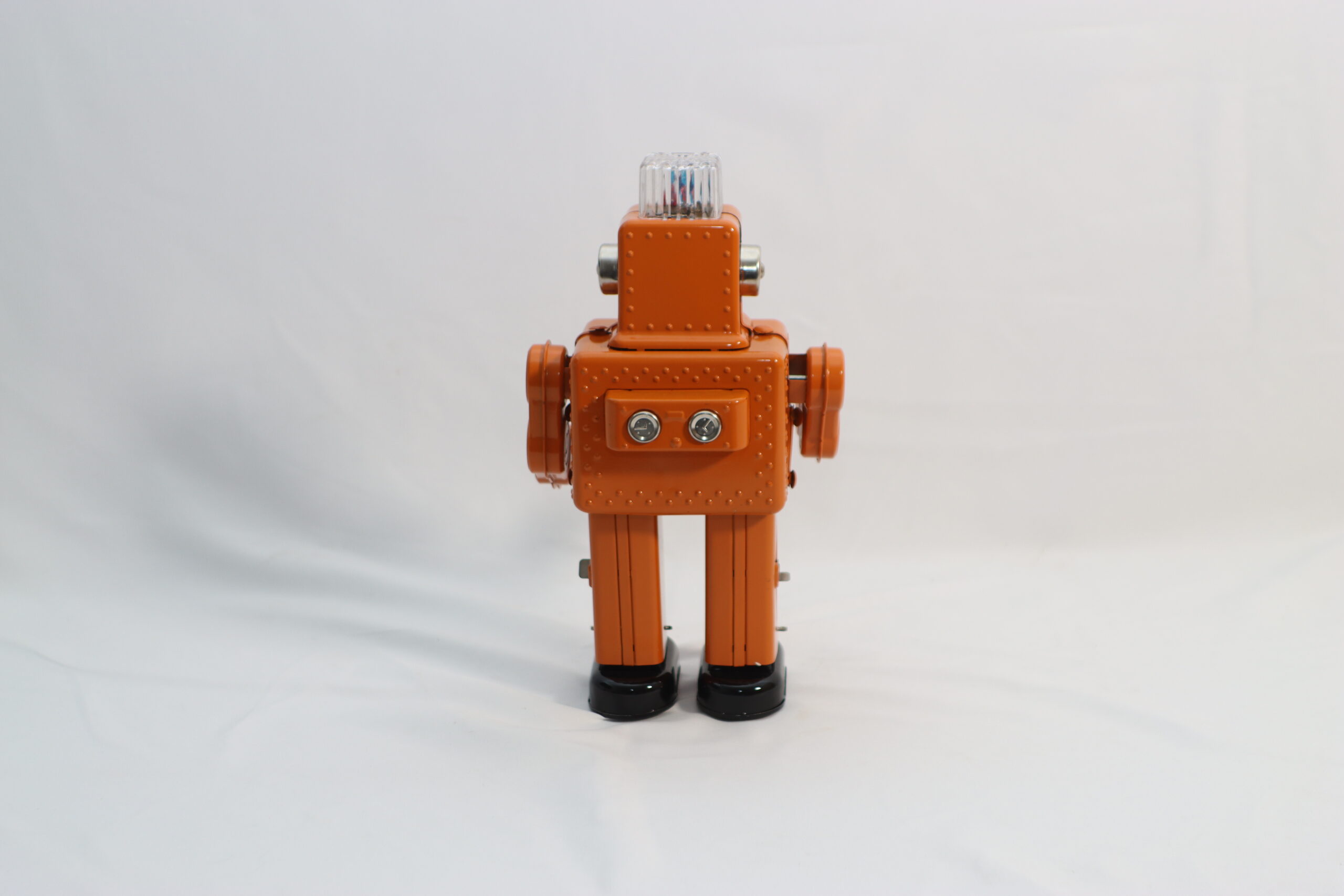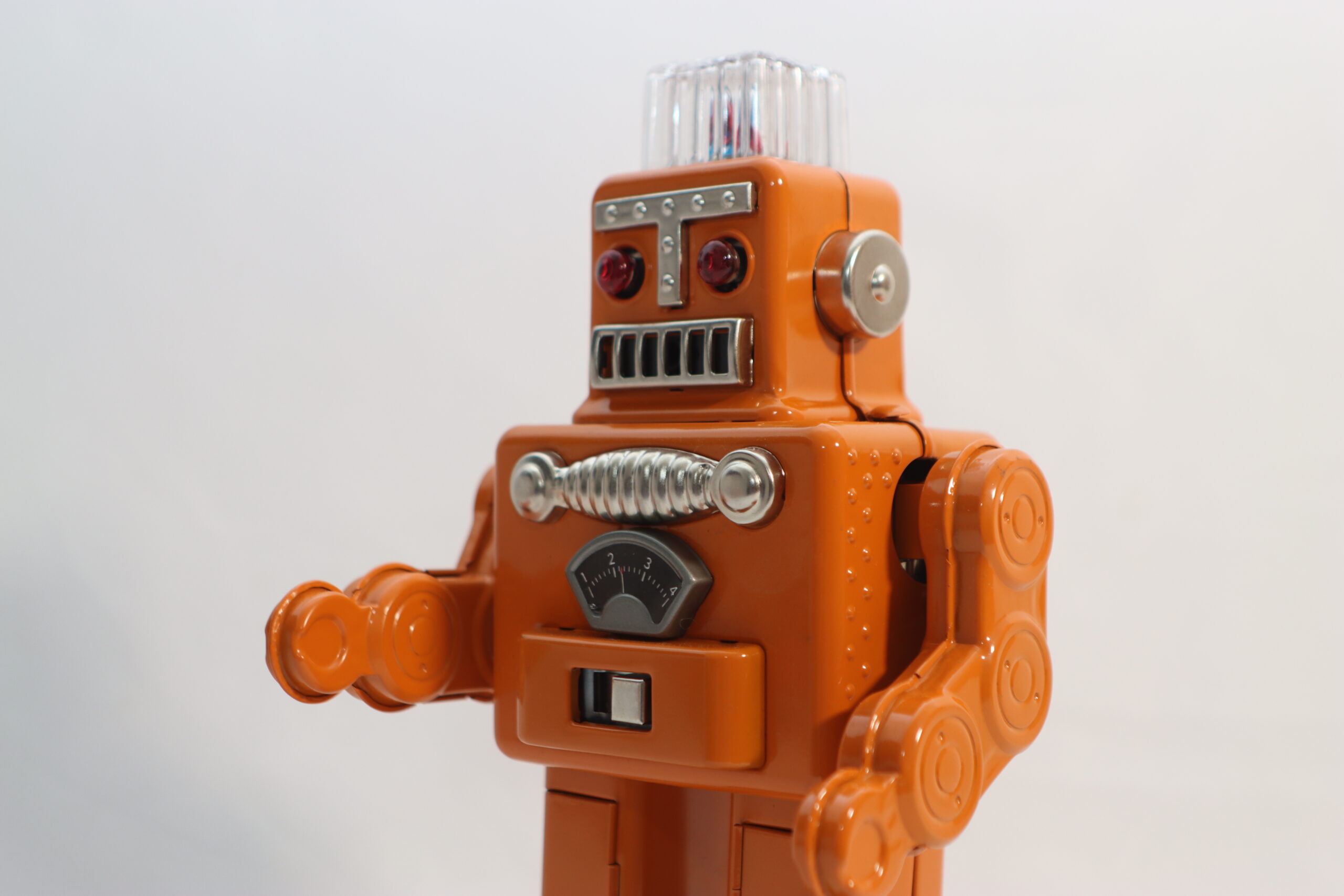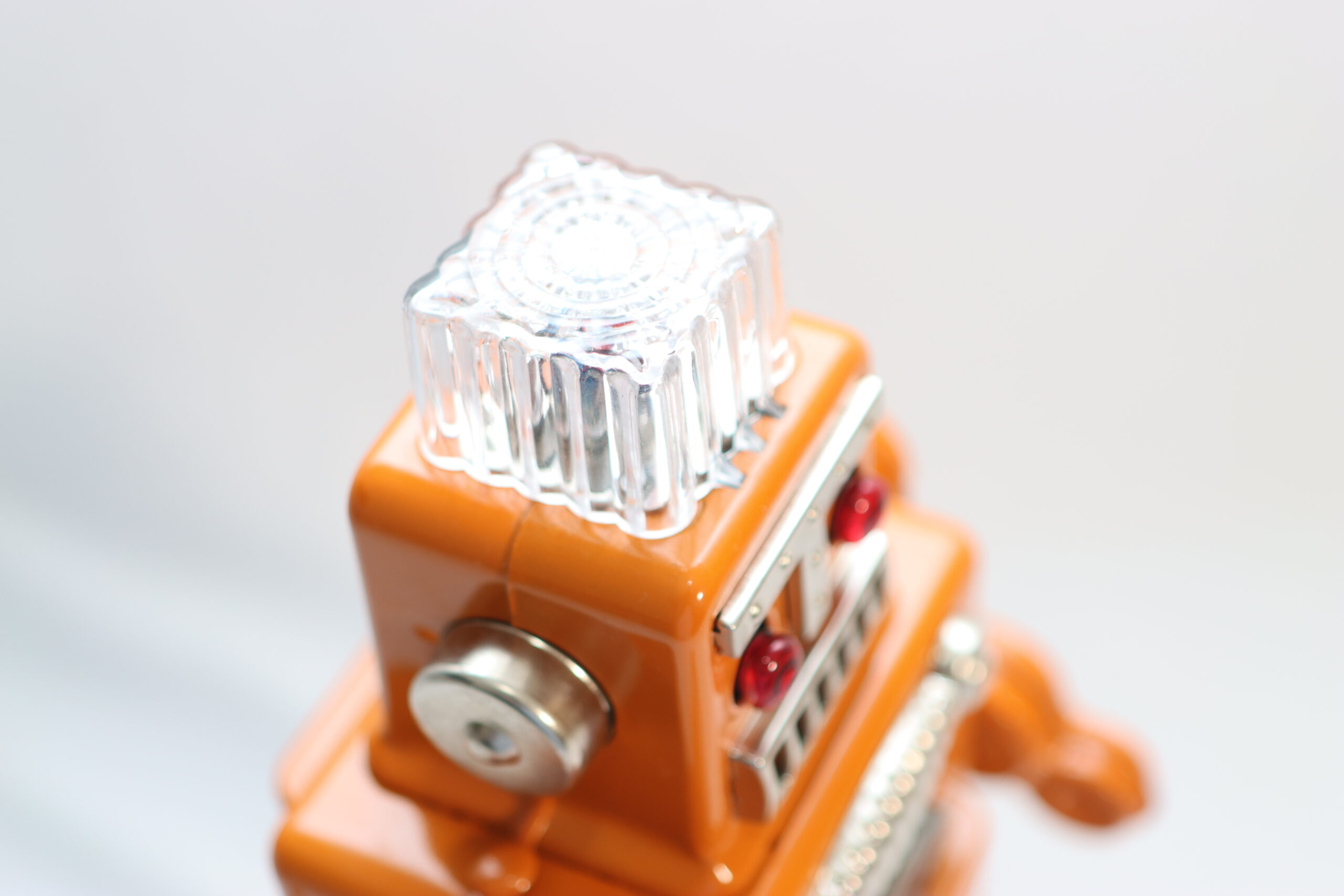 テック系企業やスタートアップのオフィス撮影に 「最新のPCやガジェットが並ぶ無機質なデスクに、あえてこのアナログなロボットを置くことで、クリエイティビティや遊び心を象徴するアクセントになります。新旧の技術が交差する、知的な面白さを演出可能です。」