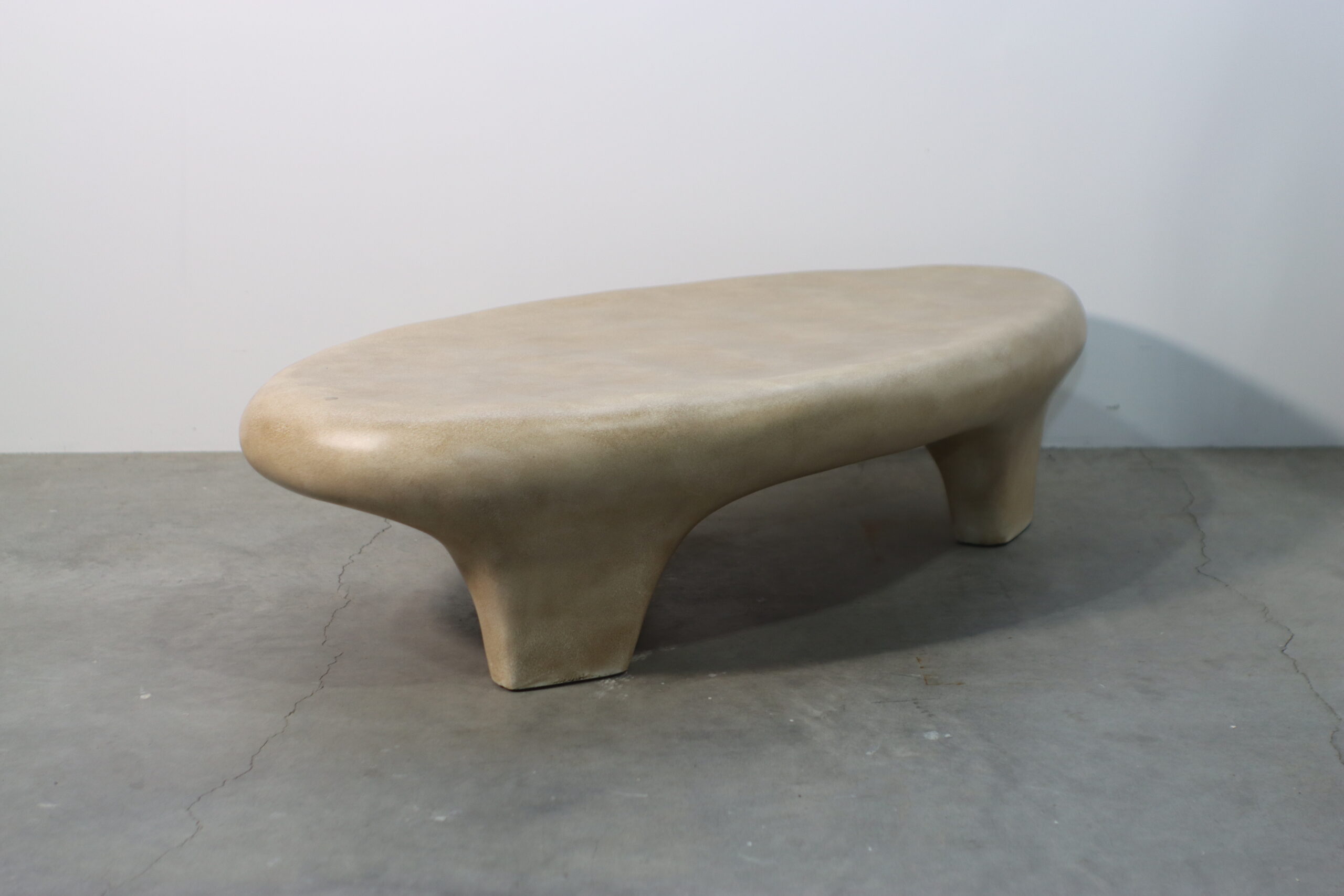 FRP製モダン・センターテーブルは、自然界の石や雲を彷彿とさせる滑らかで有機的なシルエットが特徴であり、空間に「柔らかな静寂」と「プリミティブな洗練」を付与します。
